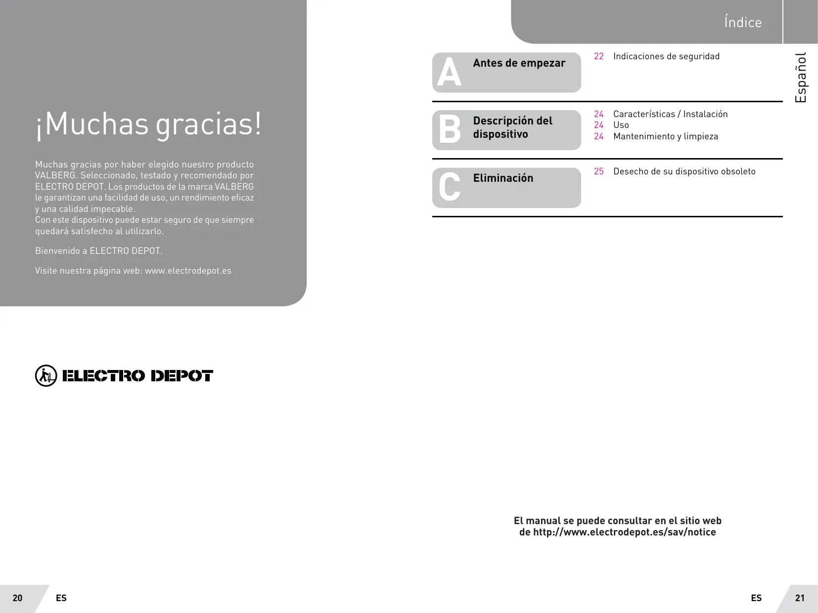 El manual se puede consultar en el sitio web de http://www.electrodepot.es/sav/notice