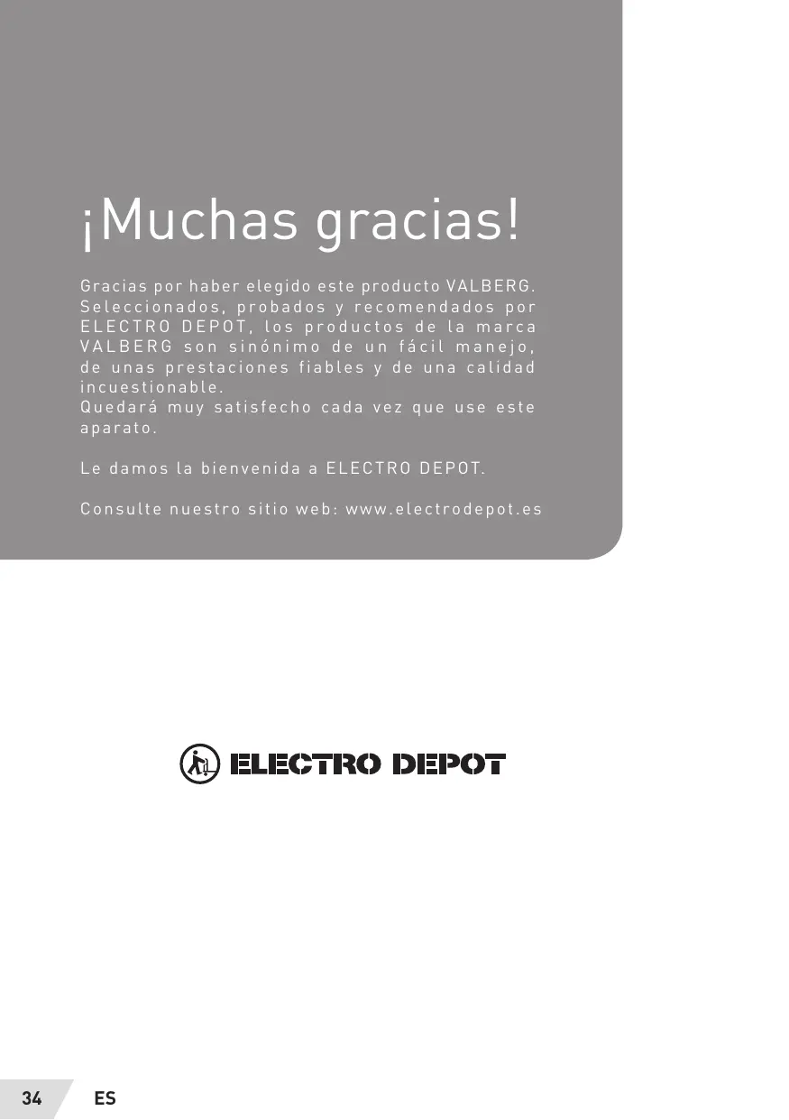 Gracias por haber elegido este producto VALBERG. Seleectionados, probados y recomendados por ELECTRO DEPOT, los productos de lamarca VALBERG son sinonimo de un fácil manejo, deunas prestaciones fiables y de una calidad incuestionable.