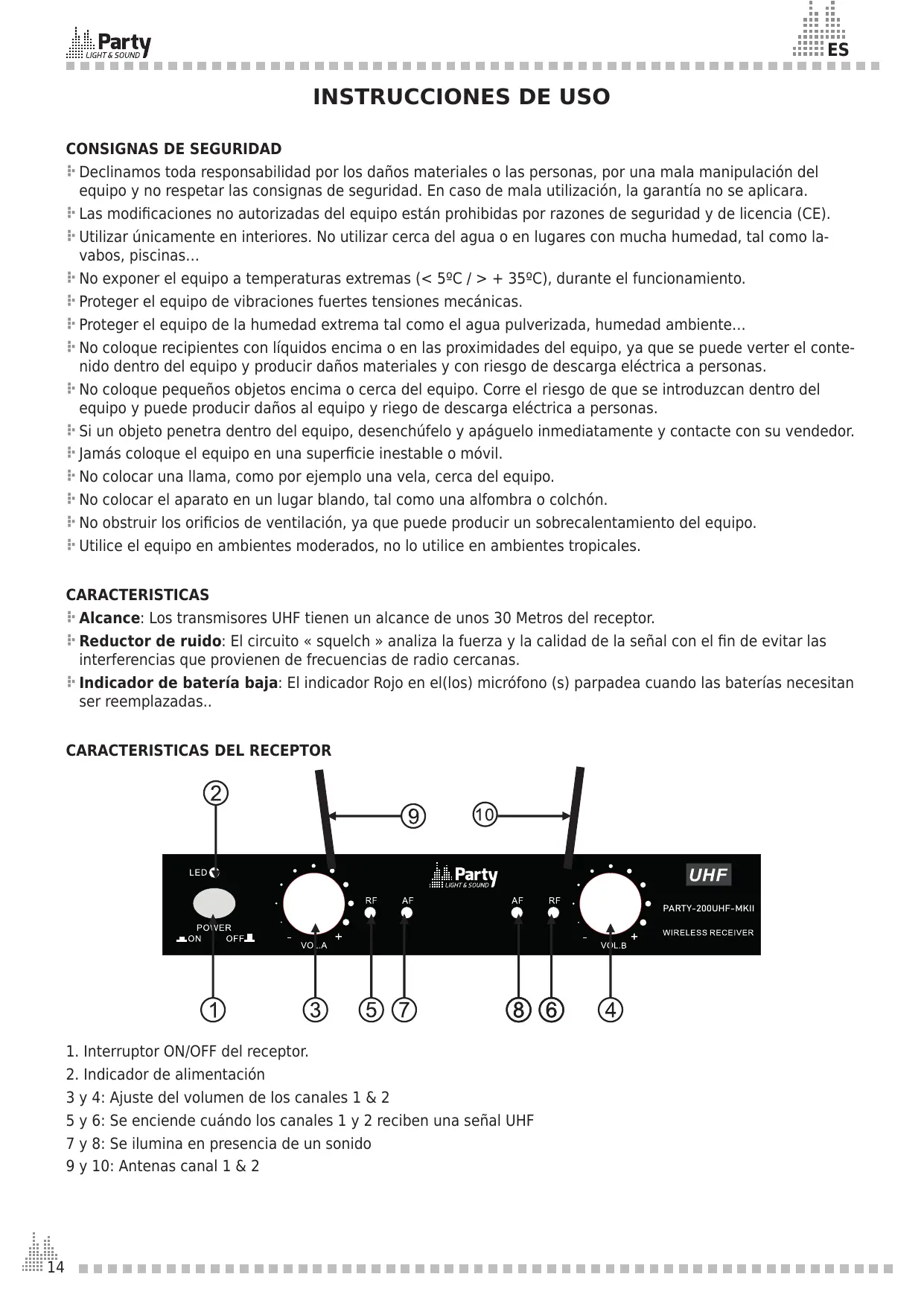 MANUAL DE USUARIO PARTY-200UHF V2 PARTY LIGHT&SOUND
