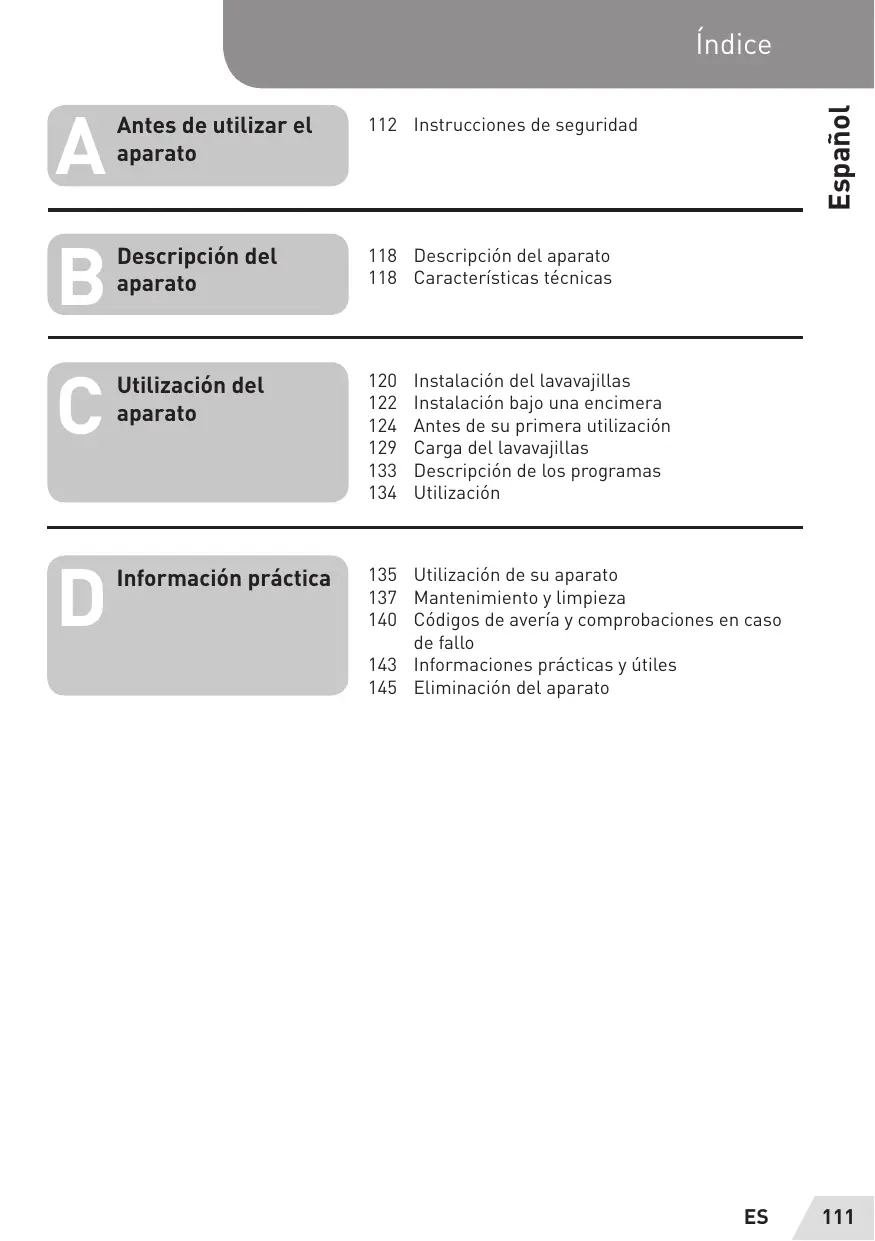 21 Chargement du lave-vaisselle 25 Description des programmes 26 Utilisation Informations 27. Mise sous tension et choix d'un programme j 29 Entretien et nettoyage ratiques Yag ee pratique: 32 Codes de dysfonctionnement et vérifications en cas de panne 35 Informations pratiques et utiles 37 Mise au rebut de votre ancien appareil
