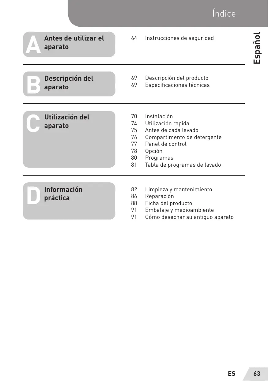 | Mantenimiento y limpieza | Limpieza regular del filtro de pelusas, limpieza del cajón de detergente |
