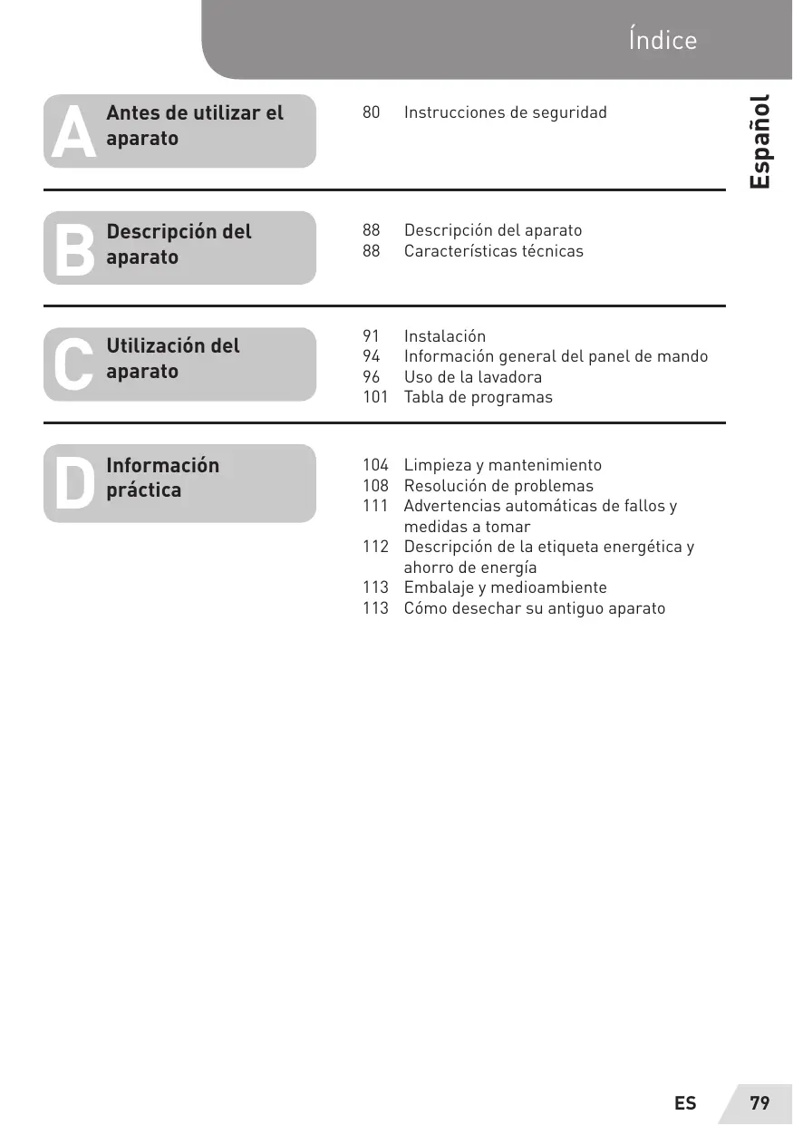 MANUAL DE USUARIO WM 912 A+++ W701T BELLAVITA