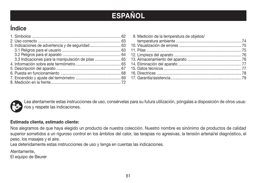 FT85 - Termómetro BEURER - Manual de uso y guía de instrucciones gratis