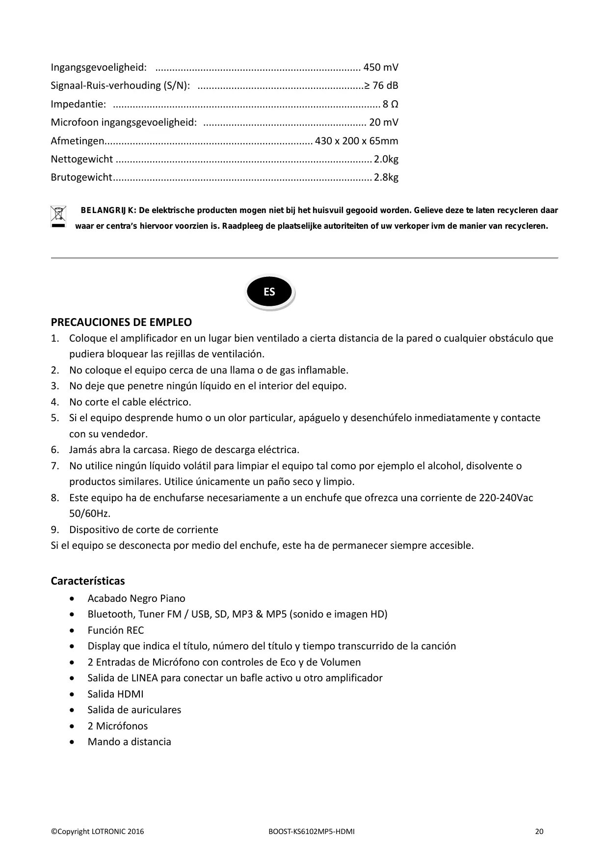 ©Copyright LOTRONIC 2016 BOOST-KS6102MP5-HDMI 9