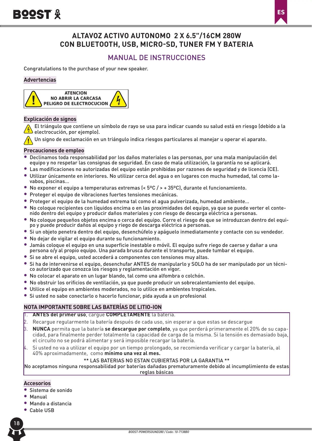 Encuentra gratis el manual del aparato POWERSOUND 280 BOOST en formato PDF.