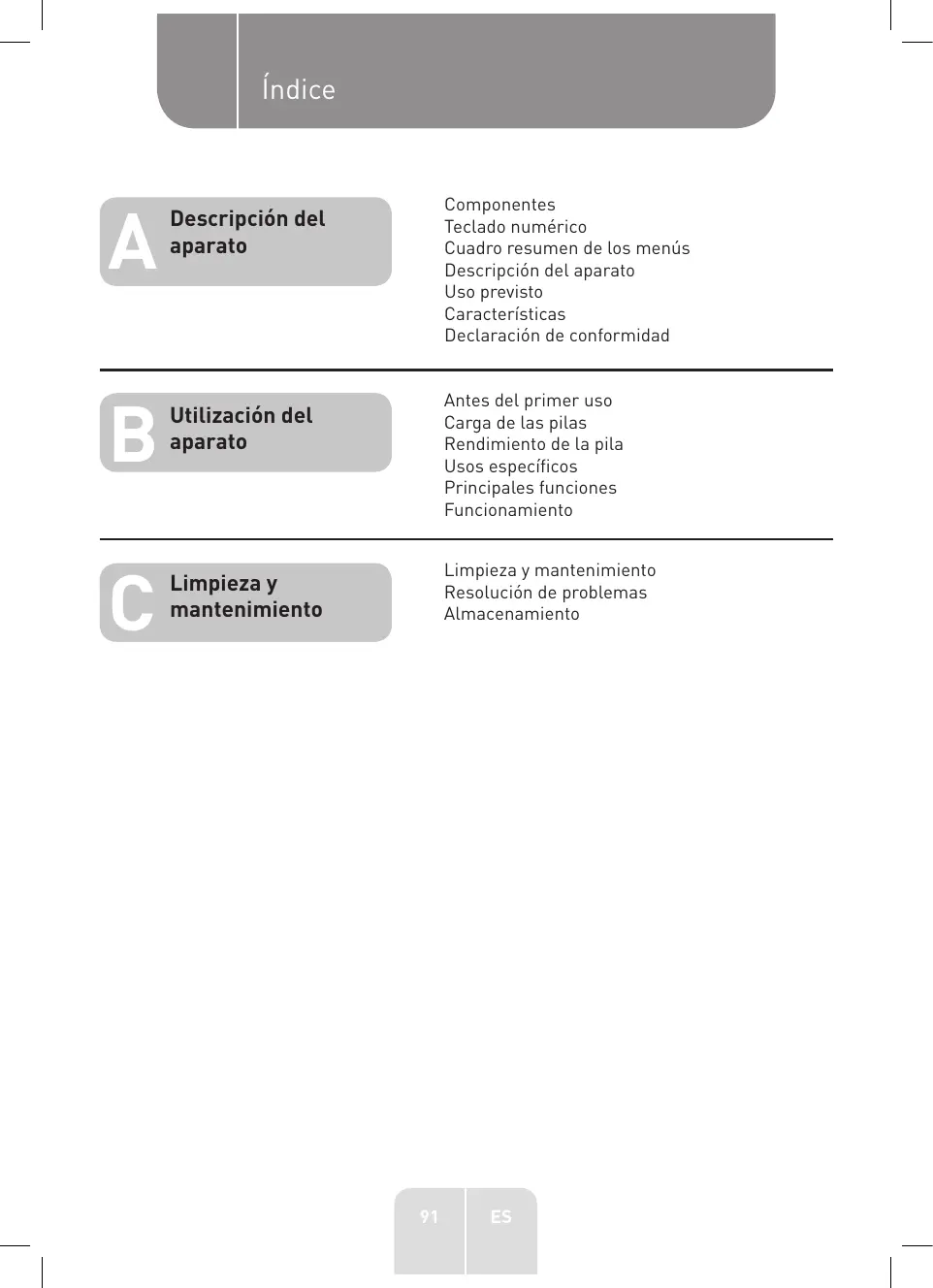 Antes del primer uso Carga de las pilas Rendimiento de La pila Usos especificos Principales funciones Funcionamiento