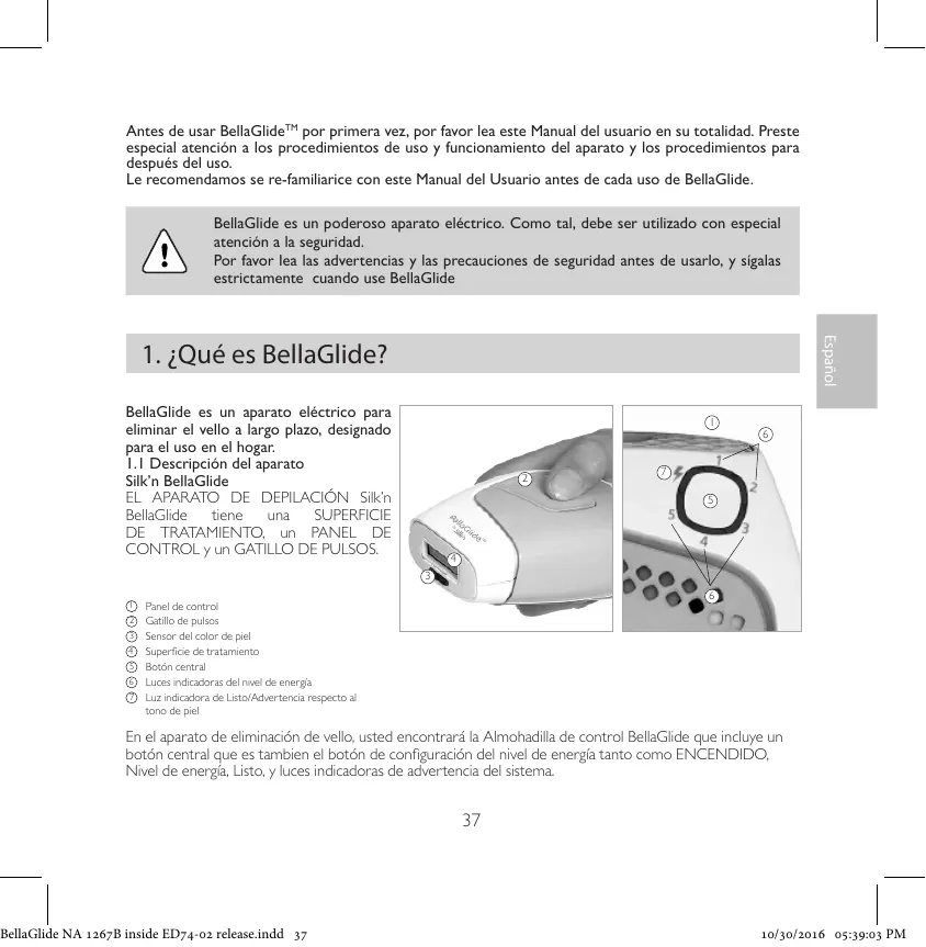 BellaGlide NA 12678 inside ED74-02 release.indd 47 10/30/2016 05:39:04 PM No aumente el nivel de energia si experimenta una molestia anormal durante o luego del tratamiento con BellaGlide (Ver la secciôn 8 - “Riesgos por usar BellaGlide”).