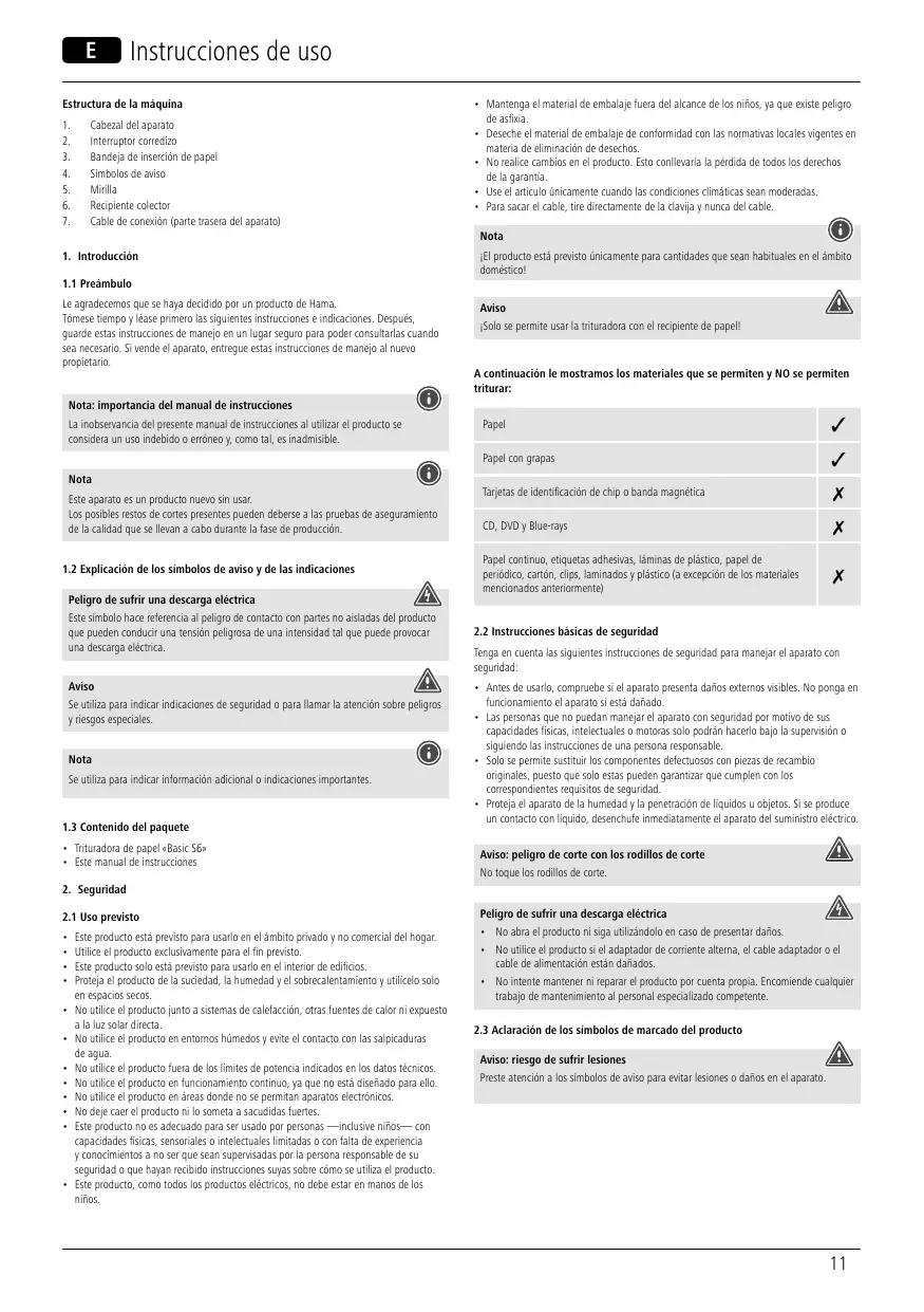 MANUAL DE USUARIO Destructeur de documents HAMA