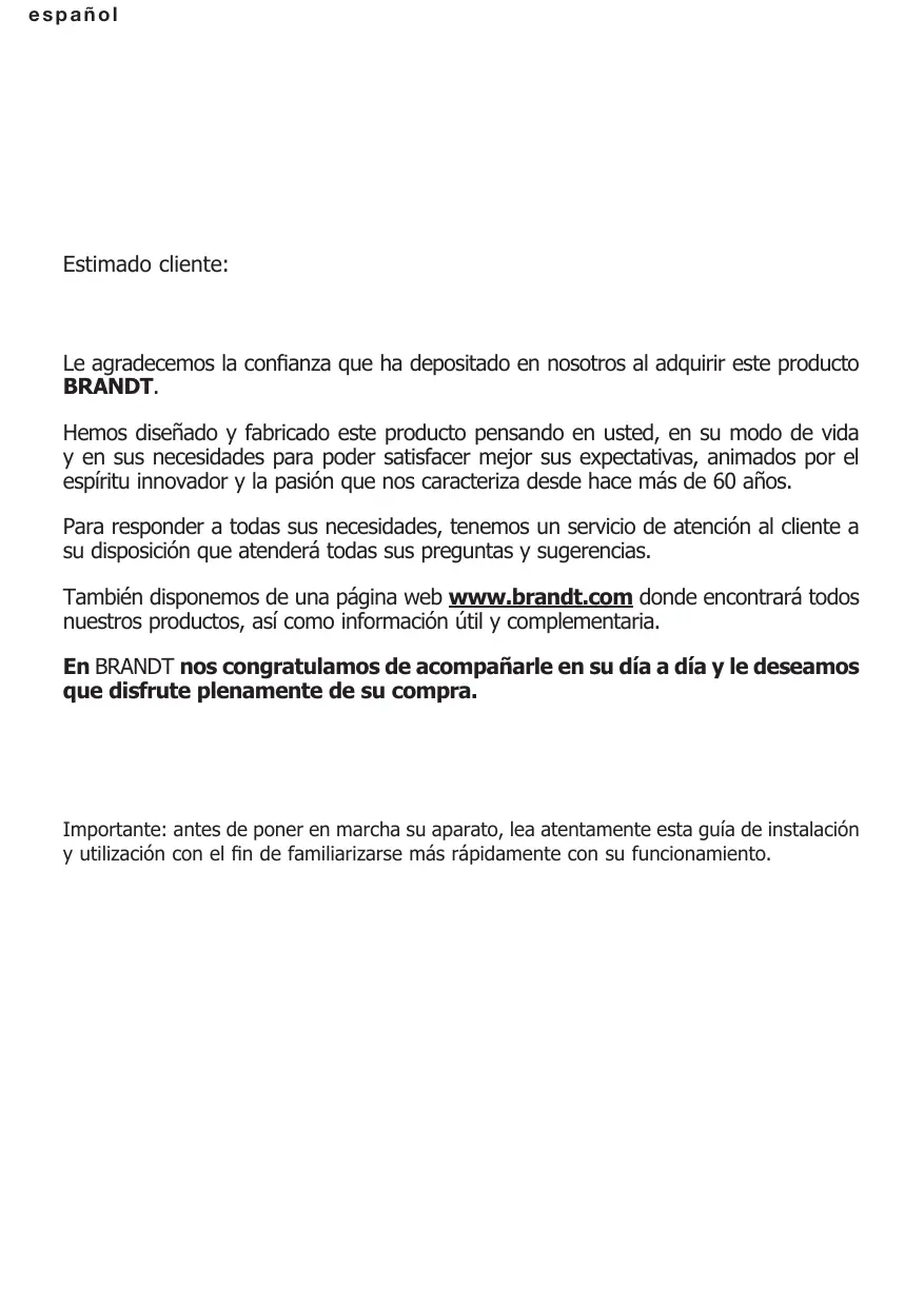 Le agradecemos la confianza que ha depositado en nosotros al adquirir este producto BRANDT.