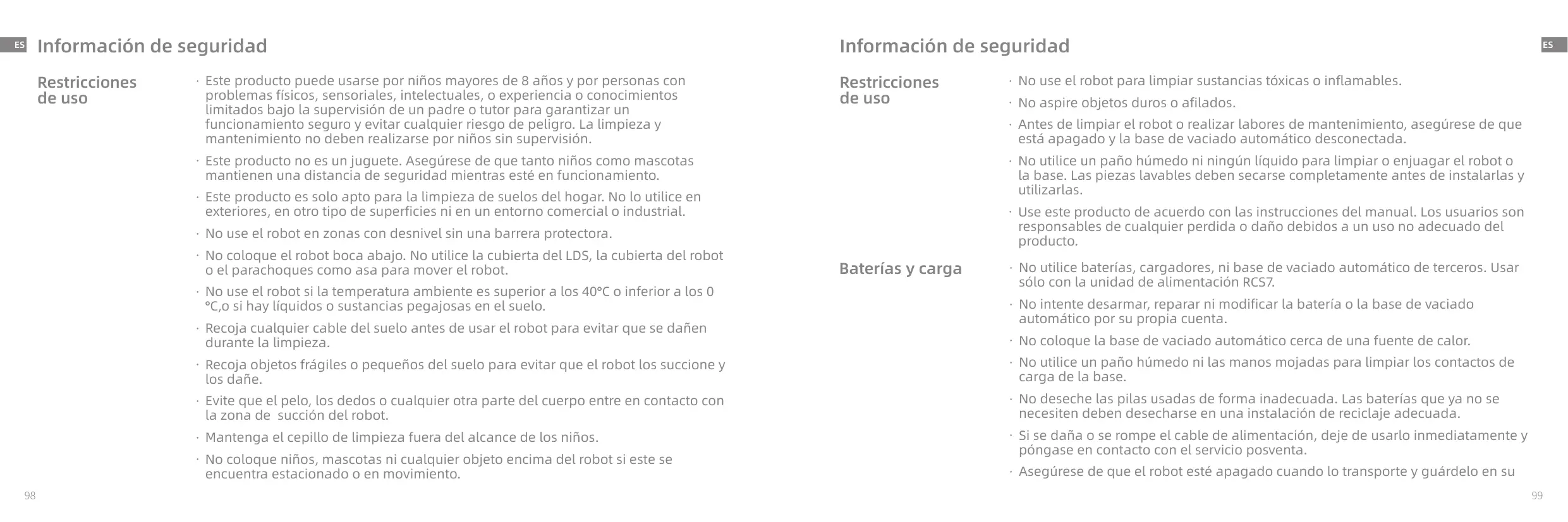 - Ne mettez pas d'enfants, d'animaux ou d'objets sur Le robot, qu'il soit à l'arrêt ou en mouvement.