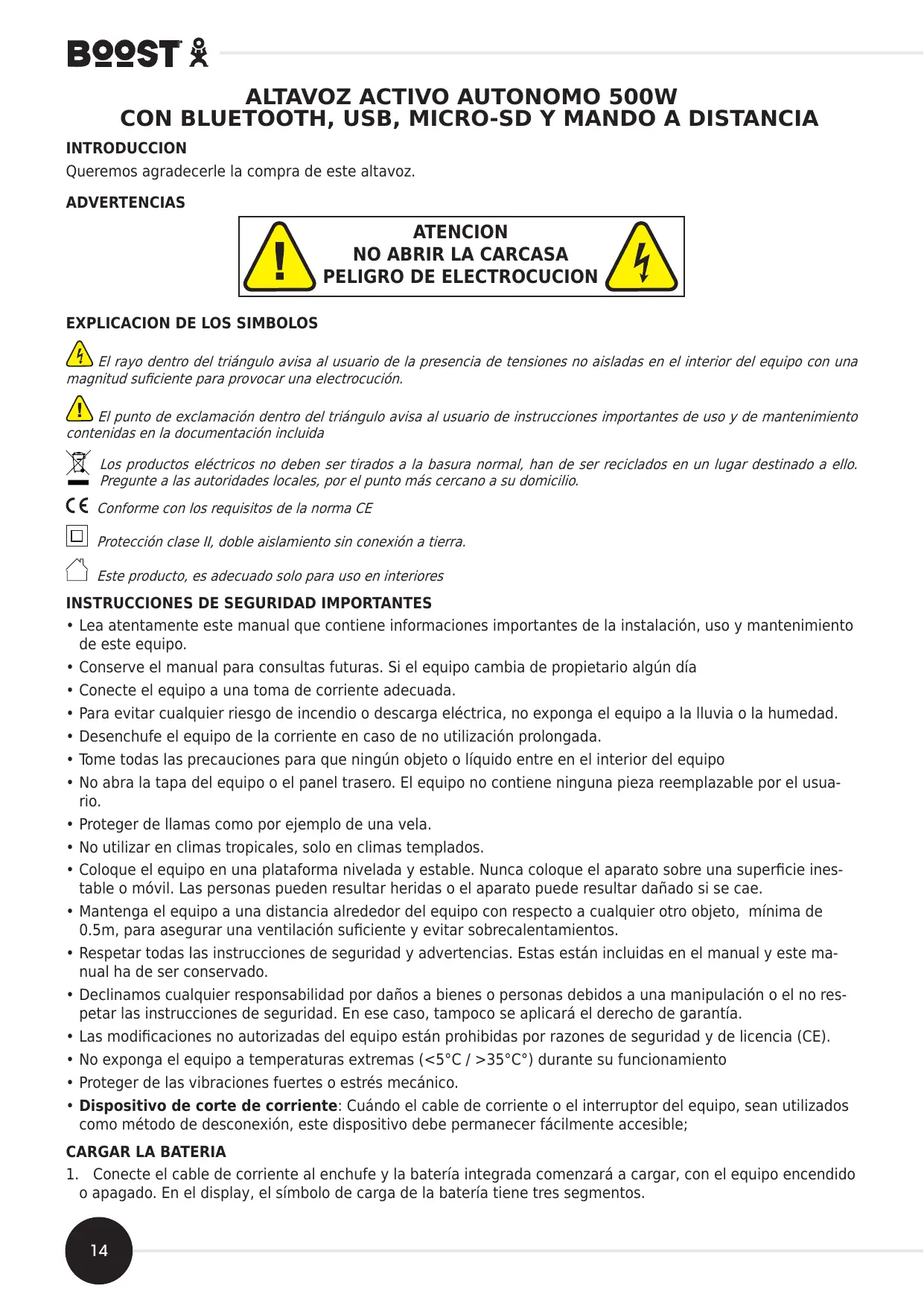 Descarga las instrucciones para tu Altavoz autoamplificado en formato PDF gratis! Encuentra tus instrucciones Luna 50 - BOOST y toma tu dispositivo electrónico nuevamente en la mano. En esta página están publicados todos los documentos necesarios para el uso de su dispositivo. Luna 50 de la marca BOOST.