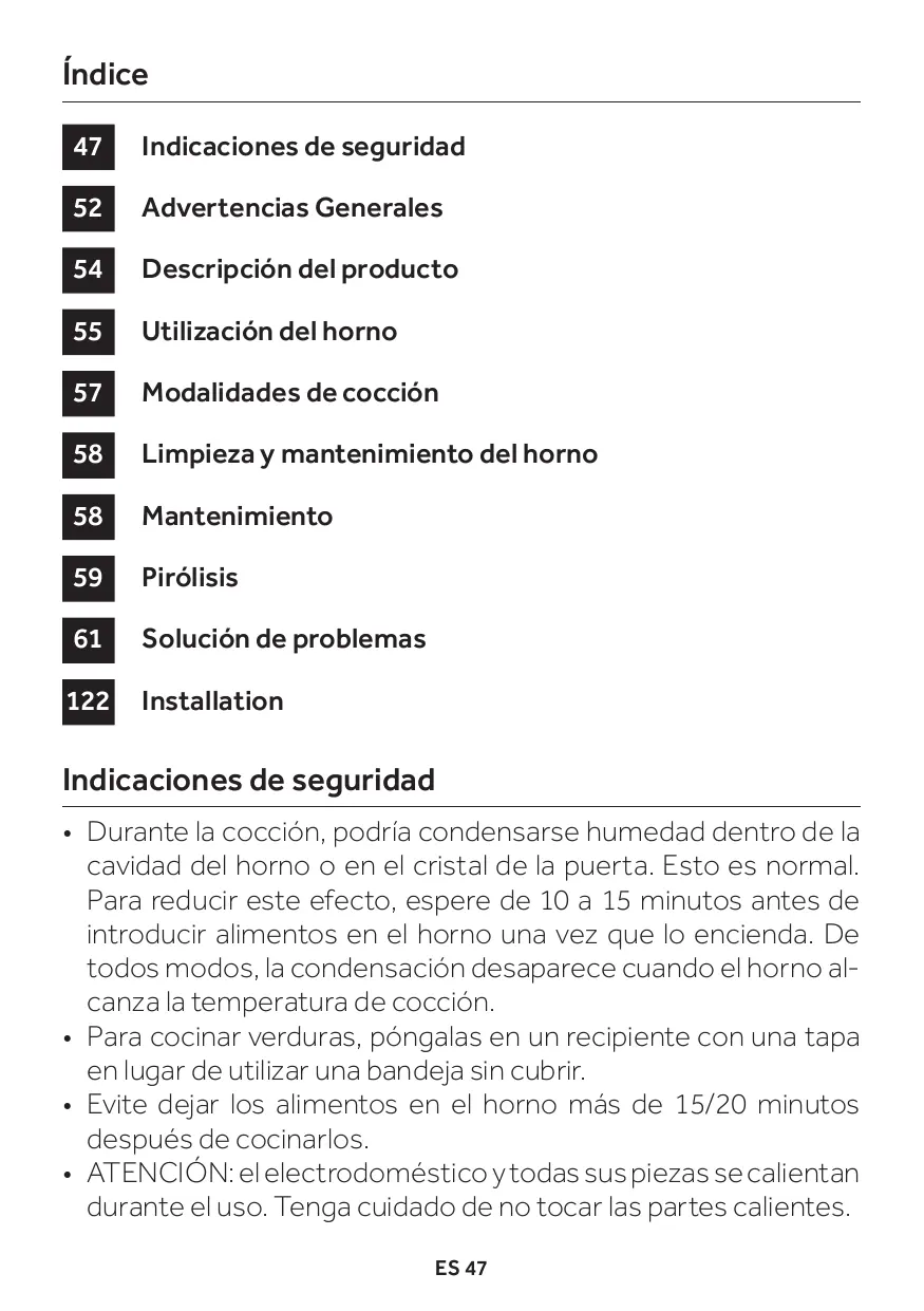 - Pour une utilisation correcte du four, il est recommandé de ne pas mettre les aliments en contact direct avec les grilles et les plateaux, mais d'utiliser des papiers de cuisson et/ou des récip- ients spéciaux.