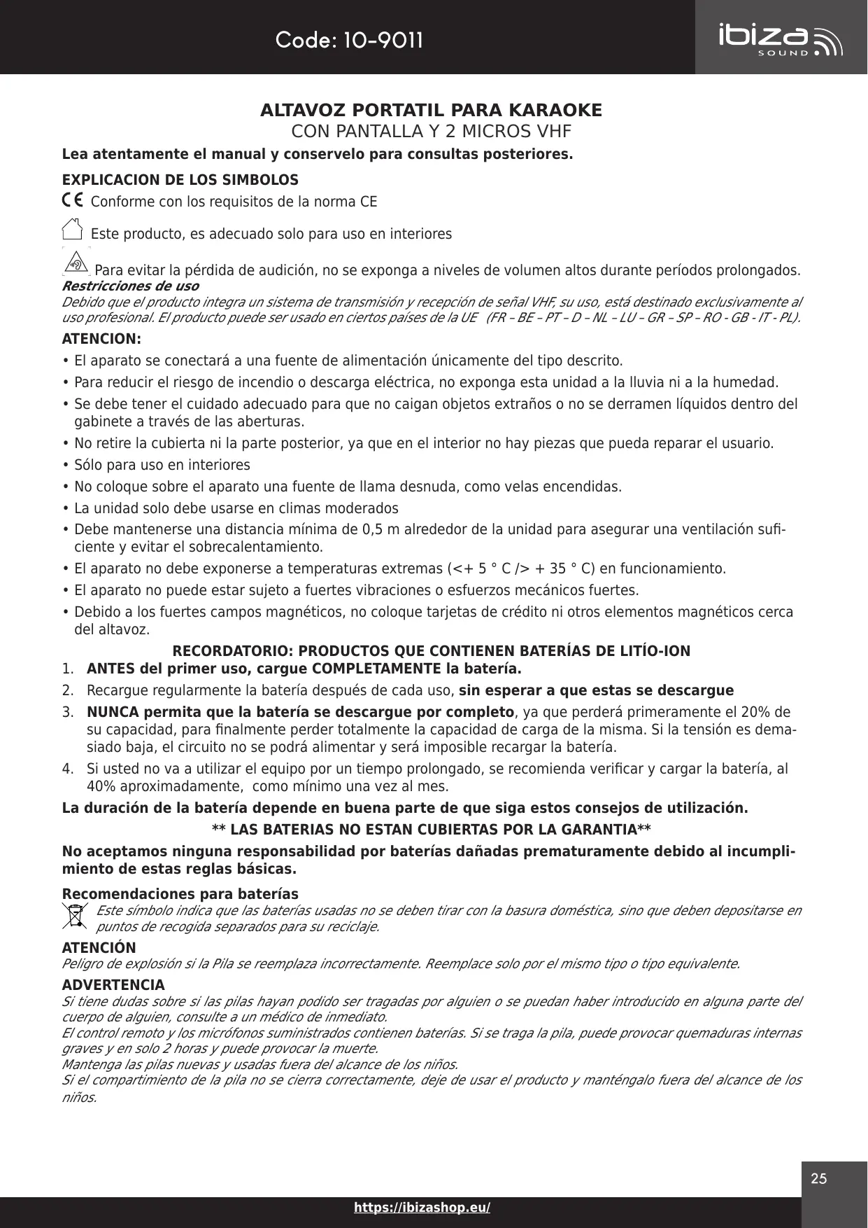 40% aproximadamente, como minimo una vez al mes. La duracién de la bateria depende en buena parte de que siga estos consejos de utilizacién. *+ LAS BATERIAS NO ESTAN CUBIERTAS POR LA GARANTIA** No aceptamos ninguna responsabilidad por baterias dañadas prematuramente debido al incumpli- miento de estas reglas bäsicas. Recomendaciones para baterias