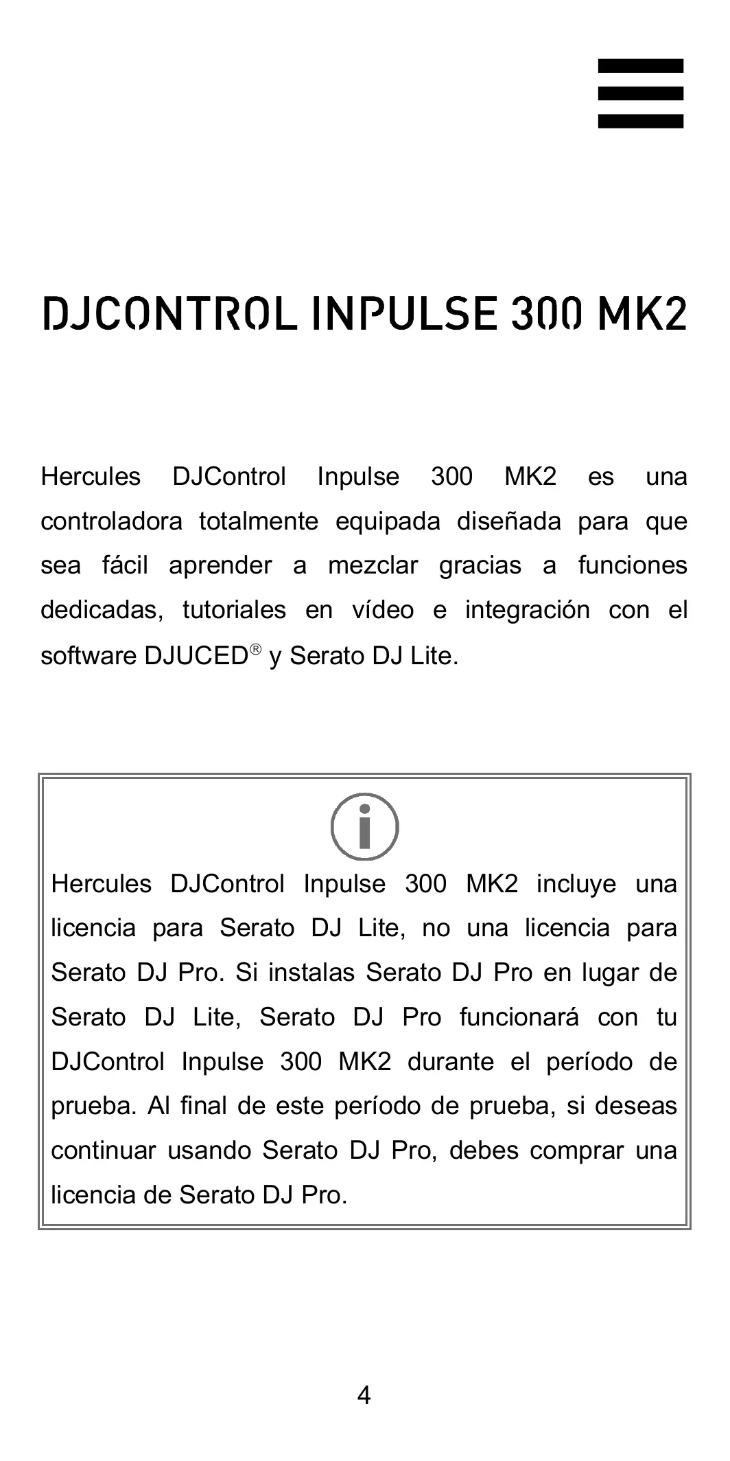 Encuentra gratis el manual del aparato INPULSE 300 MK2 HERCULES en formato PDF.