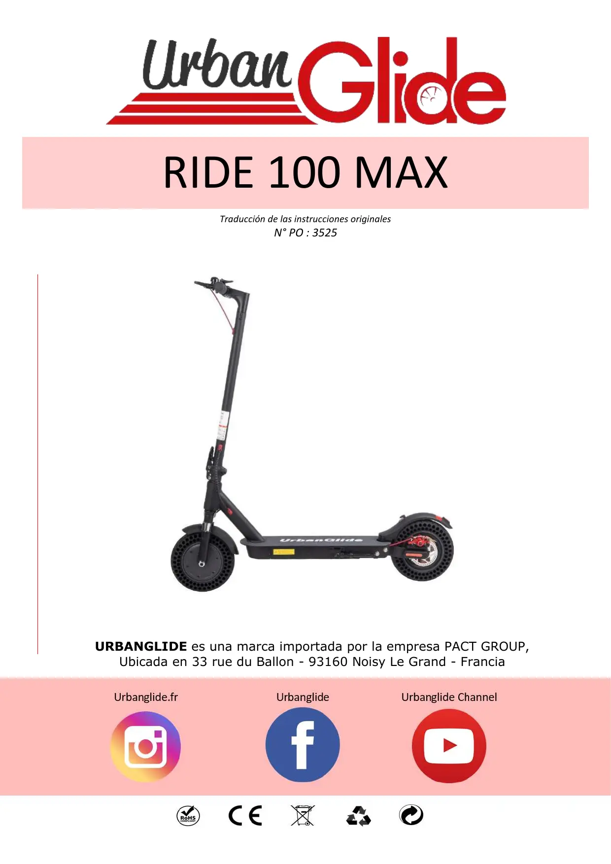 Descarga las instrucciones para tu Patinete electrico en formato PDF gratis! Encuentra tus instrucciones 100 XS Max - URBANGLIDE y toma tu dispositivo electrónico nuevamente en la mano. En esta página están publicados todos los documentos necesarios para el uso de su dispositivo. 100 XS Max de la marca URBANGLIDE.