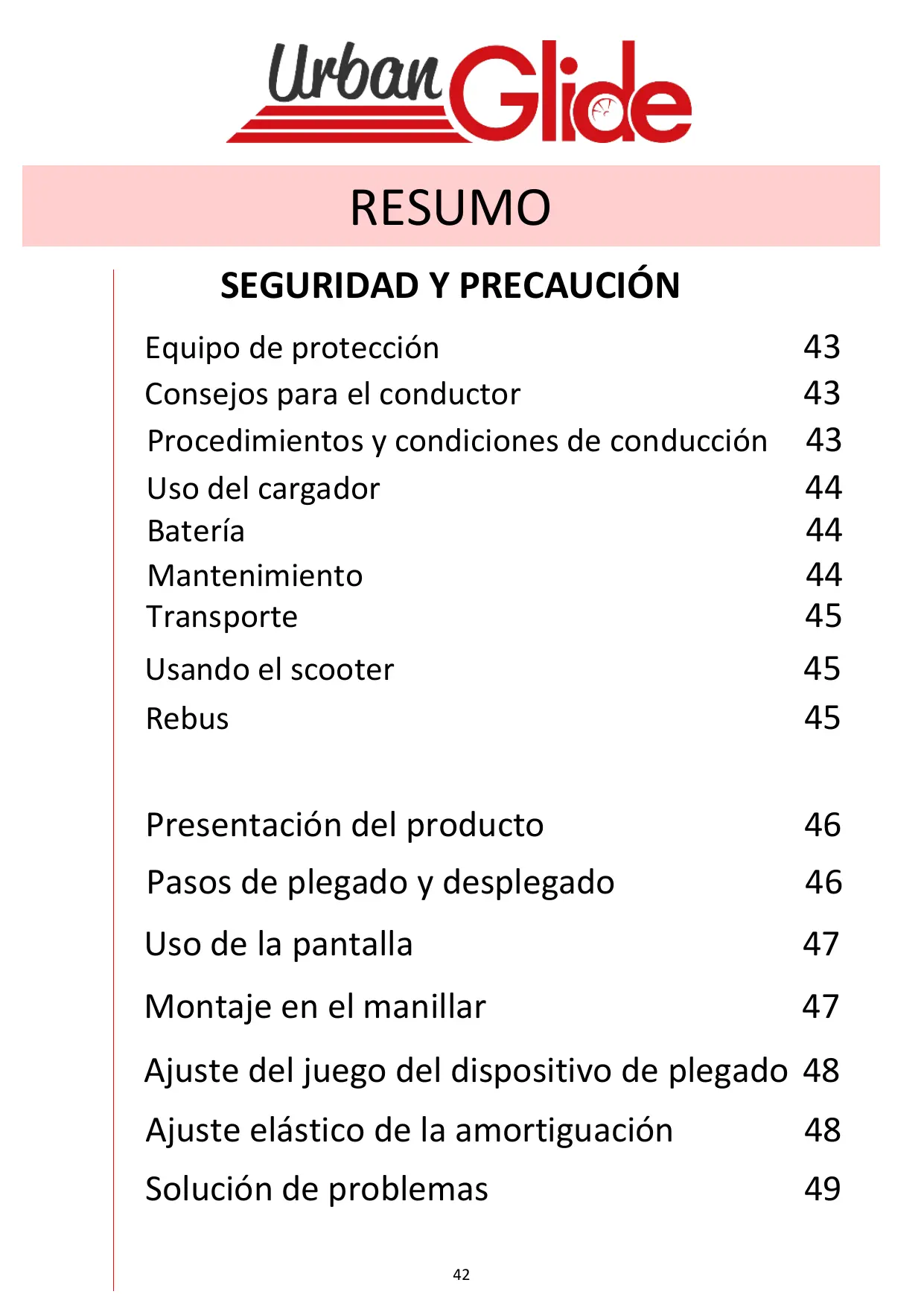 Encuentra gratis el manual del aparato RIDE 85+ URBANGLIDE en formato PDF.