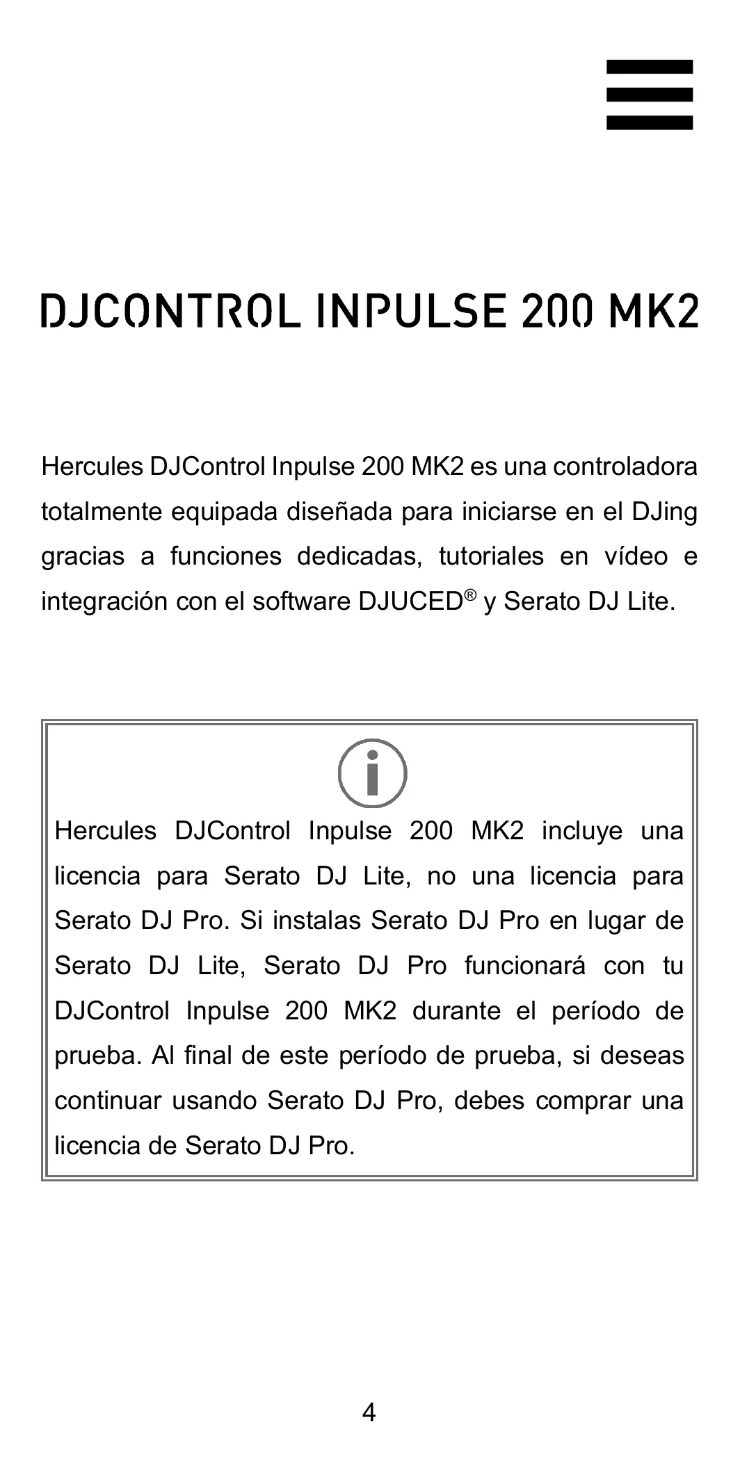 Inpulse 200 MK2 - Contrôleur usb HERCULES - Manual de uso y guía de instrucciones gratis
