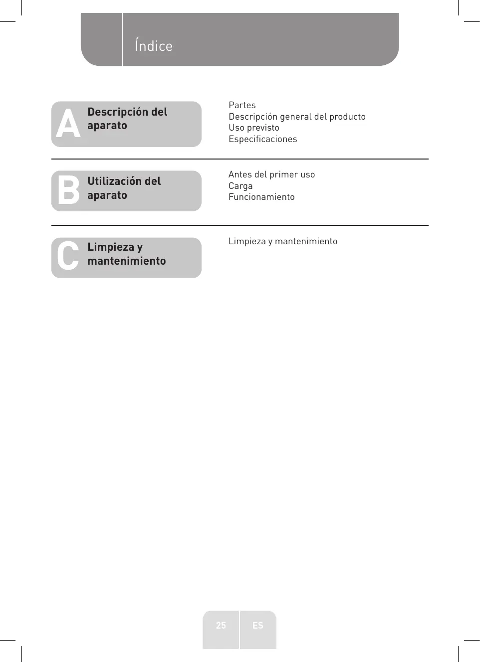 - Cargue Completely la batería recargable del aparato al menos una vez cada 4 días si el aparato no va a utiliser durante un periodo prolongado de tiempo.