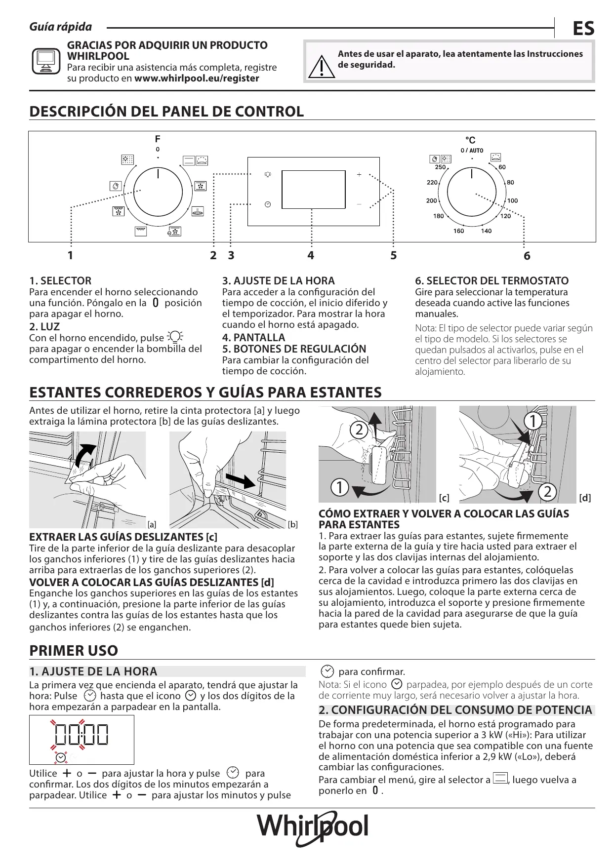 WHIRLPOOL Antes de usar el aparato, lea atentamente las Instrucciones Para recibir una asistencia mâs completa, registre de seguridad. su producto en www.whirlpool.eu/register
