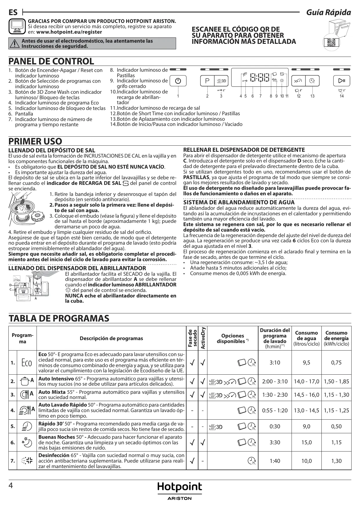 H4FD641A 14S41DB - Lavavajillas HOTPOINT - Manual de uso y guía de instrucciones gratis