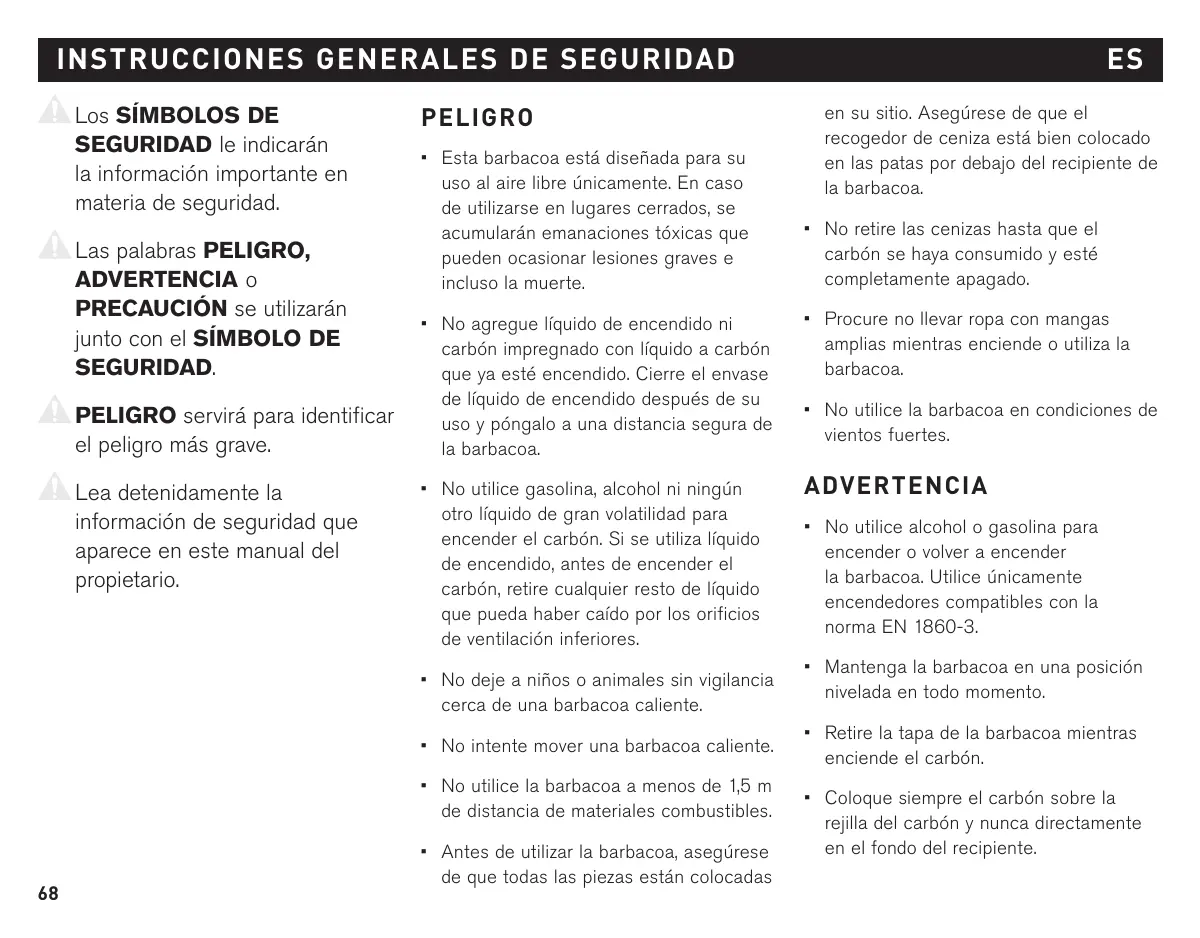 + Ne portez pas de vêtements avec des manches larges et flottantes lors de l'allumage et de l’utilisation du barbecue