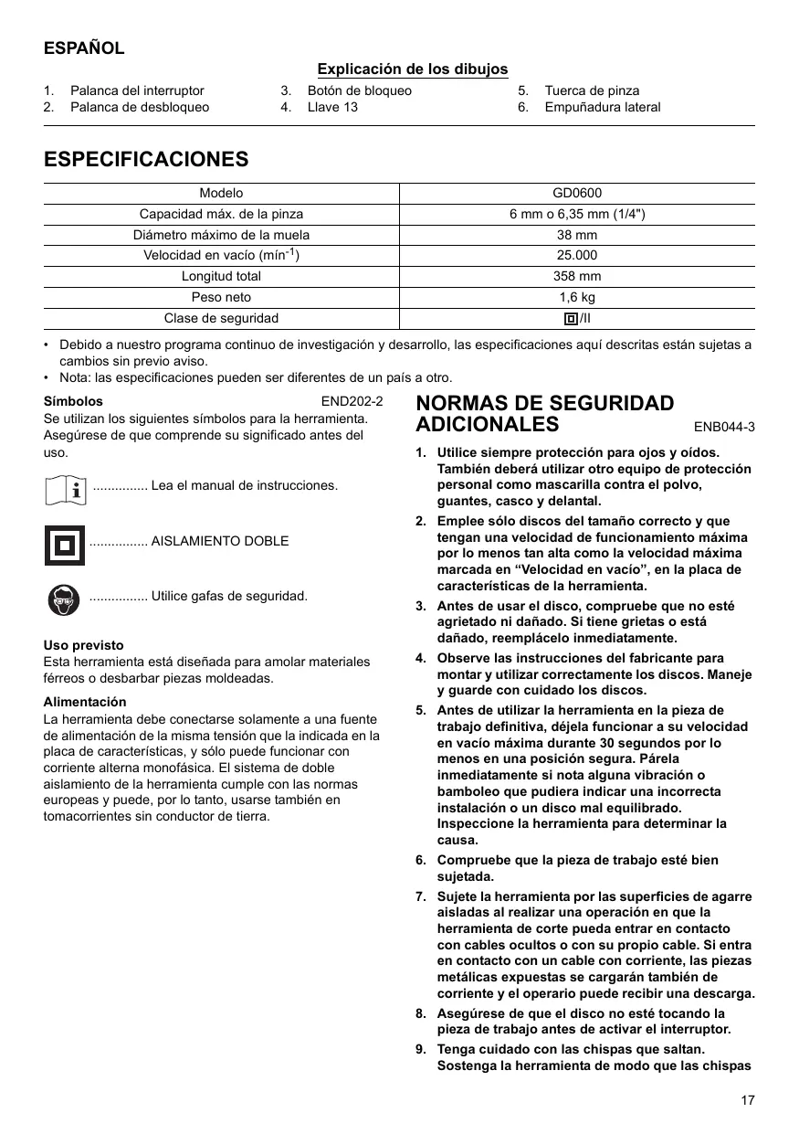Gd0600 - Amoladora MAKITA - Manual de uso y guía de instrucciones gratis