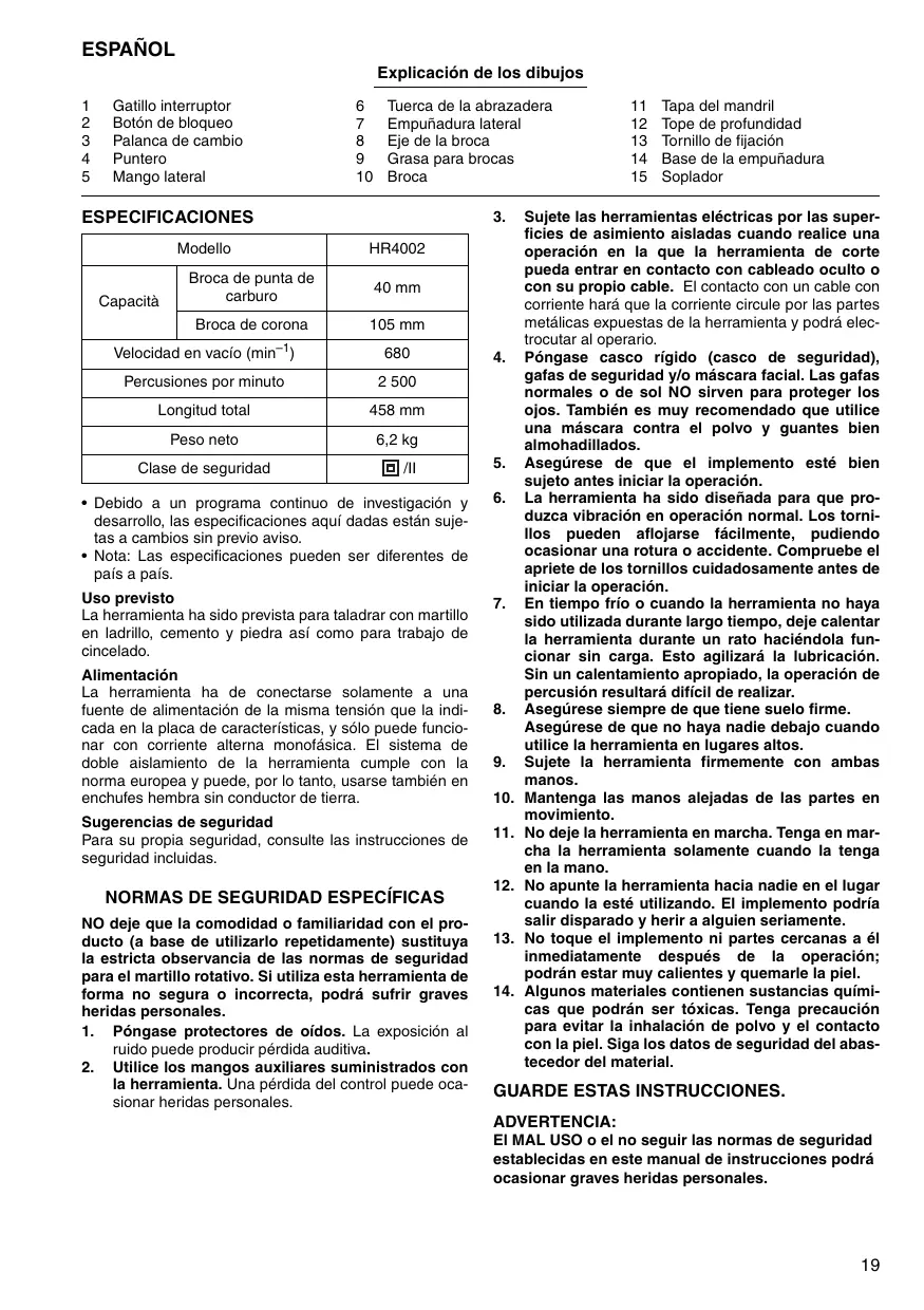 MANUAL DE USUARIO Hr4002 MAKITA
