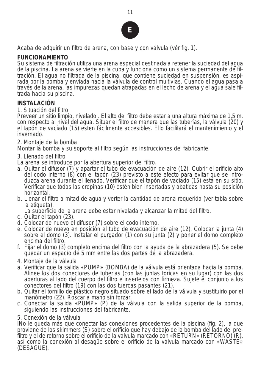 11 m³/h - Filtre à sable pour piscine HAYWARD - Manual de uso y guía de instrucciones gratis