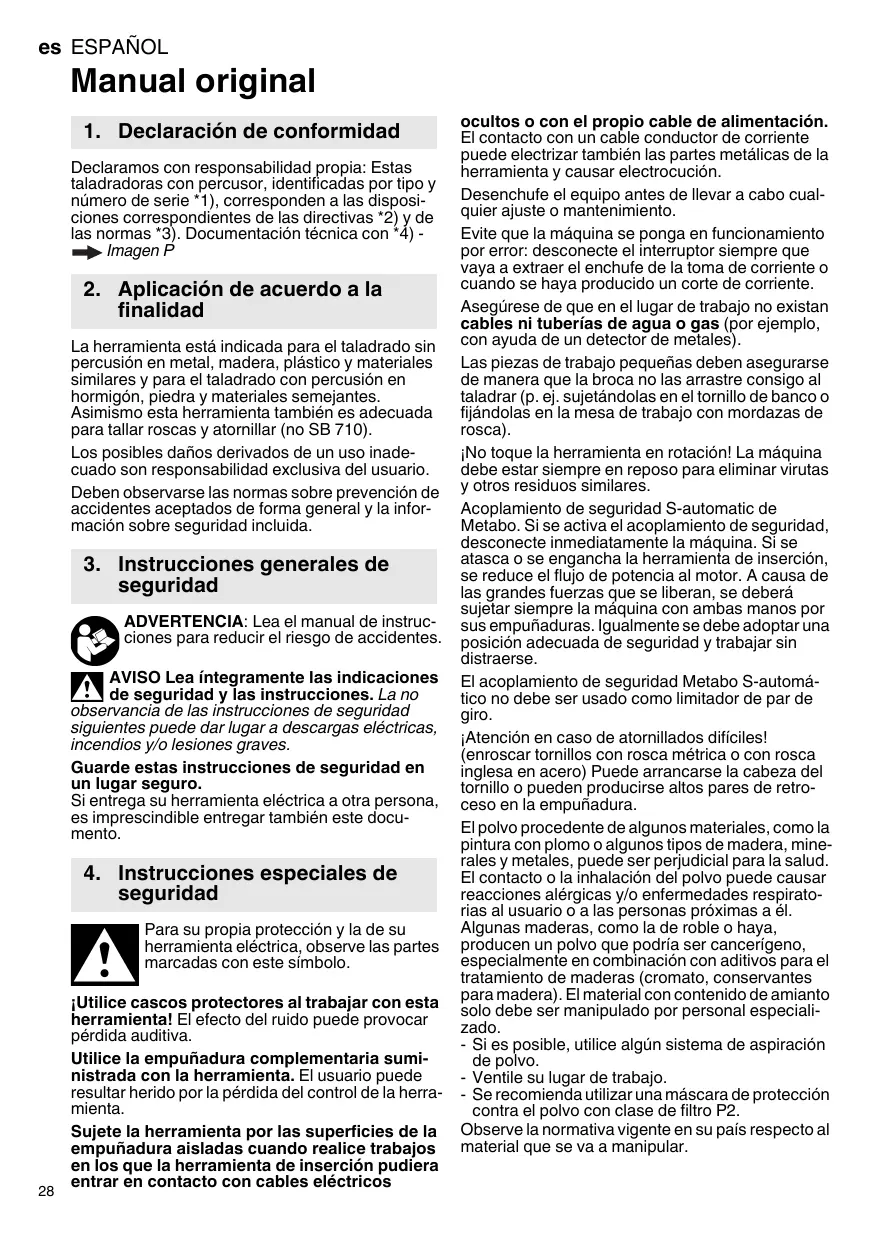 SB 710 SBE 701 SP SBE 710 SBE 730 SBE 751 SBE 850 SBE 900 Impuls SBE 1000 SBE 1100 Plus SBE 1300 - Taladro de impacto METABO - Manual de uso y guía de instrucciones gratis