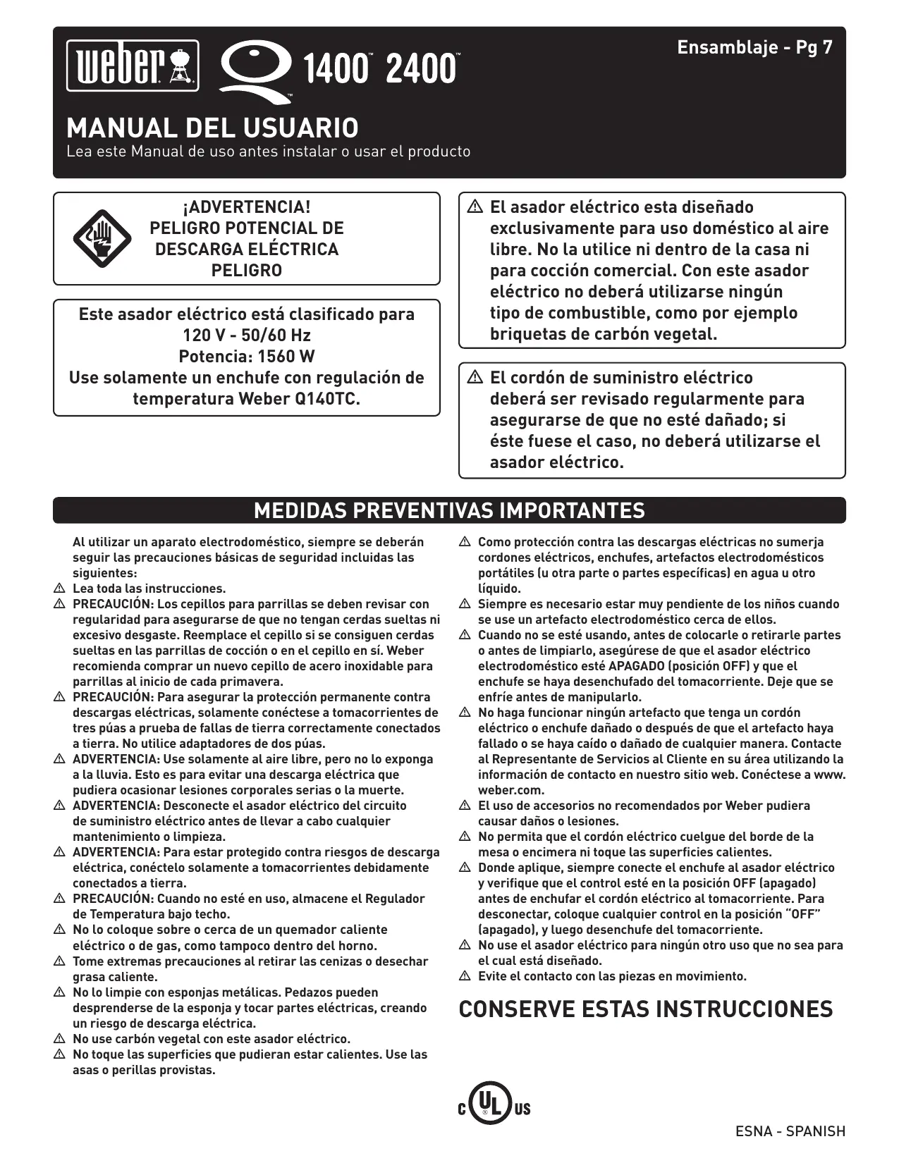 Q 2400 - Barbacoa electrica WEBER - Manual de uso y guía de instrucciones gratis