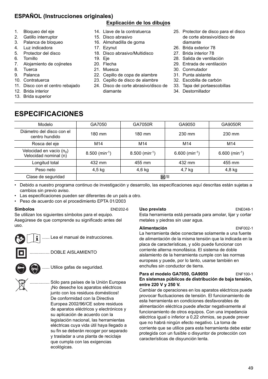 GA7050 GA7050R GA9050 GA9050R - Meuleuse filaire MAKITA - Manual de uso y guía de instrucciones gratis