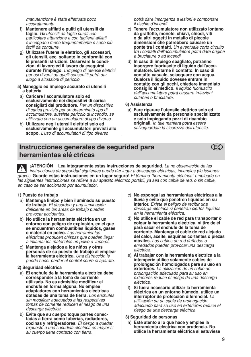 No utilice la herramienta eléctrica en un entorno con peligro de explosiôn, en el que se encuentren combustibles liquidos, gases © material en polvo. Las herramientas eléctricas producen chispas que pueden llegar à inflamar los materiales en polvo o vapores. c) Mantenga alejados a los niños y otras psrsonäs de su puesto de trabajo al emplear la herramienta eléctrica. Una distracciôn le puede hacer perder el control sobre el aparato.