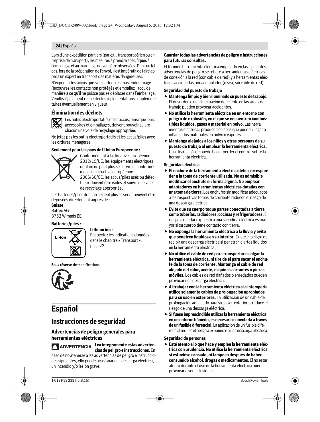 Encuentra gratis el manual del aparato PROFESSIONAL GSA 18V-LIC BOSCH en formato PDF.