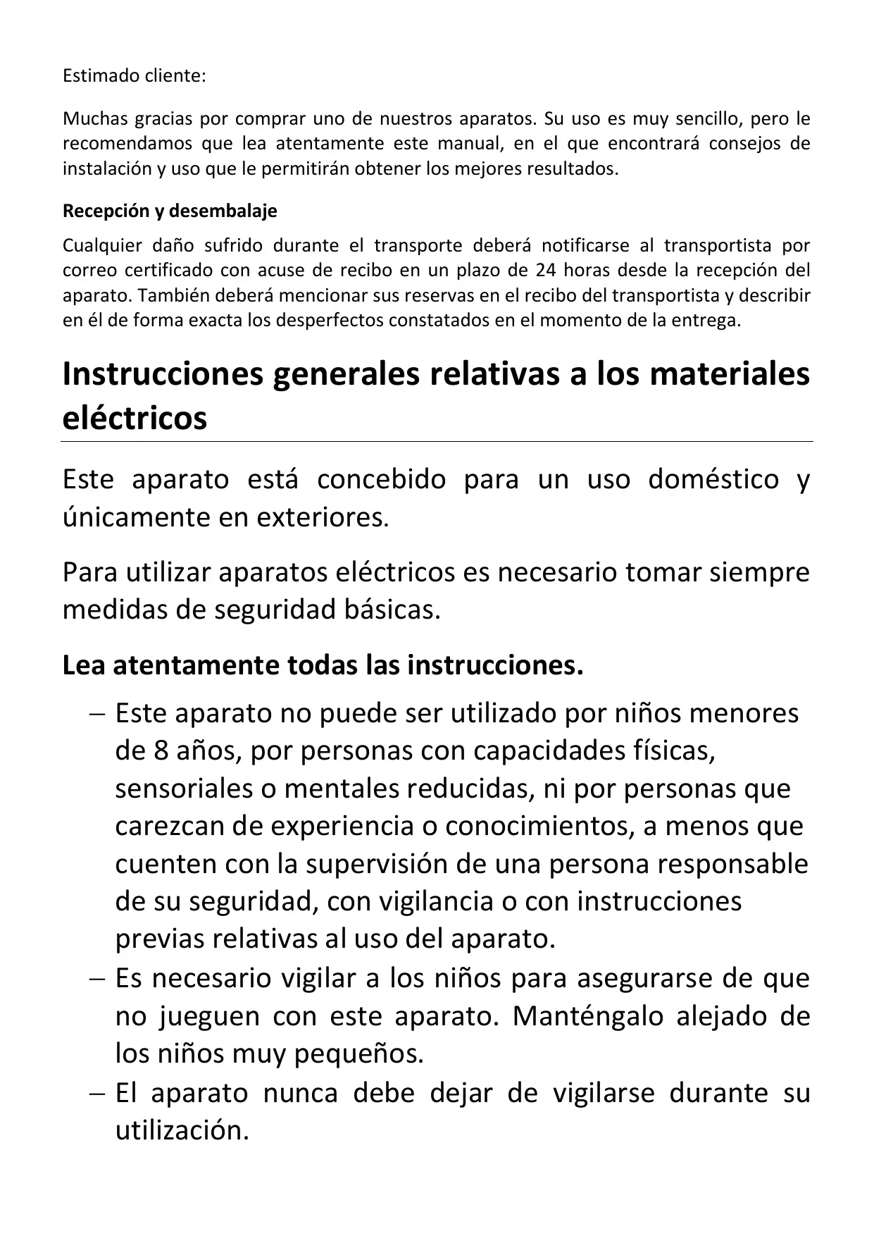 Cet appareil est réservé uniquement à un usage familial pour l'extérieur.