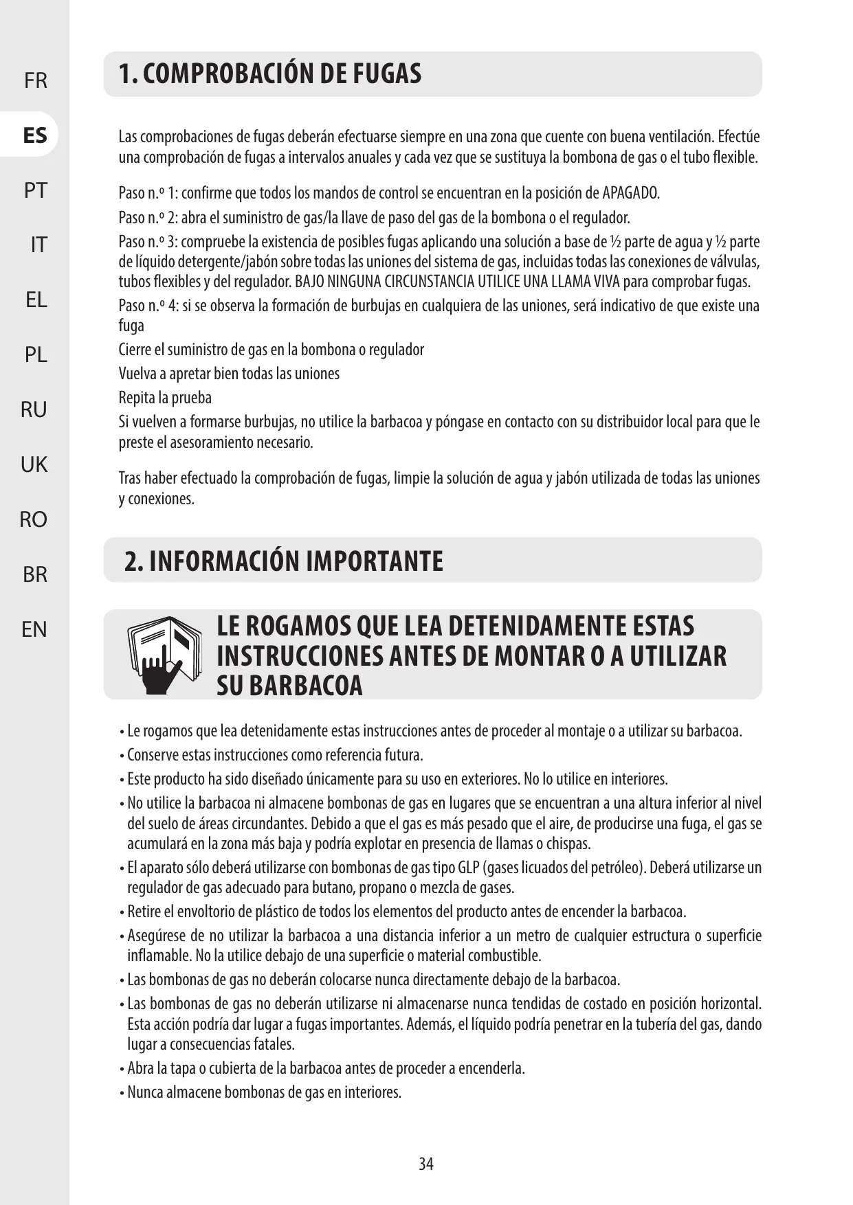 + Avant d'utiliser votre barbecue faîtes un test de fuite. C'est le seul moyen fiable de détecter une fuite de gaz sur les joints ou les connexions après le montage.