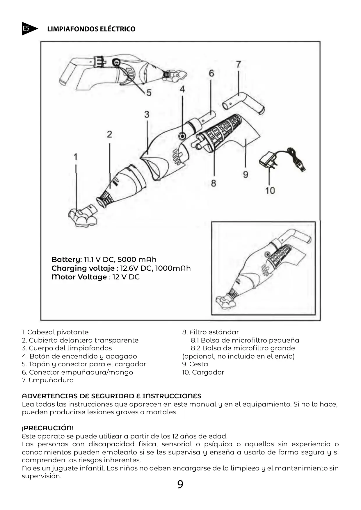 Este aparato no es un juguete. Debe vigilar a los niños para que no juguen con el aparato ni con sus accesorios. No permita que los niños utilizecen este dispositivo. Guarde el aspirador y sus accesorios bajo del alcance de los niños.