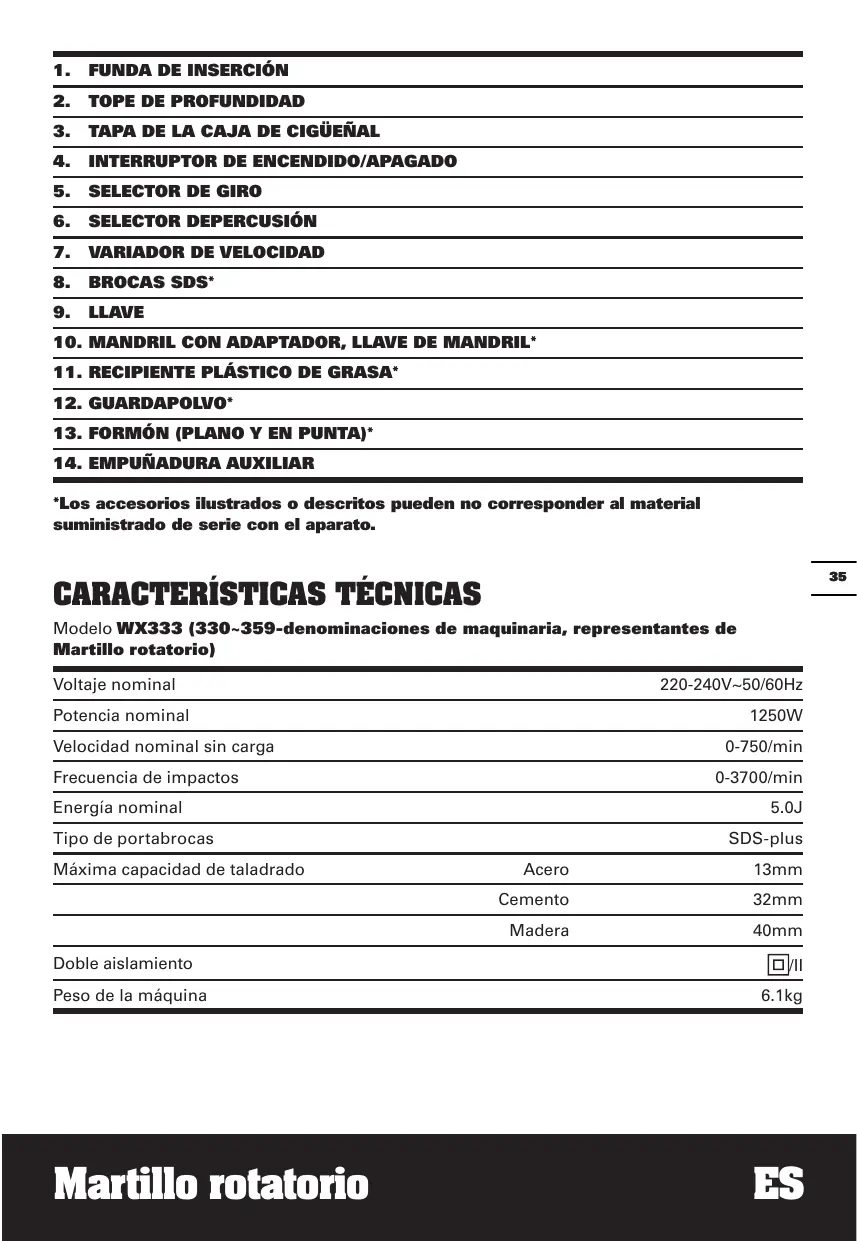 Descarga las instrucciones para tu Martillo perforador en formato PDF gratis! Encuentra tus instrucciones WT344 - WX333 - WORX y toma tu dispositivo electrónico nuevamente en la mano. En esta página están publicados todos los documentos necesarios para el uso de su dispositivo. WT344 - WX333 de la marca WORX.