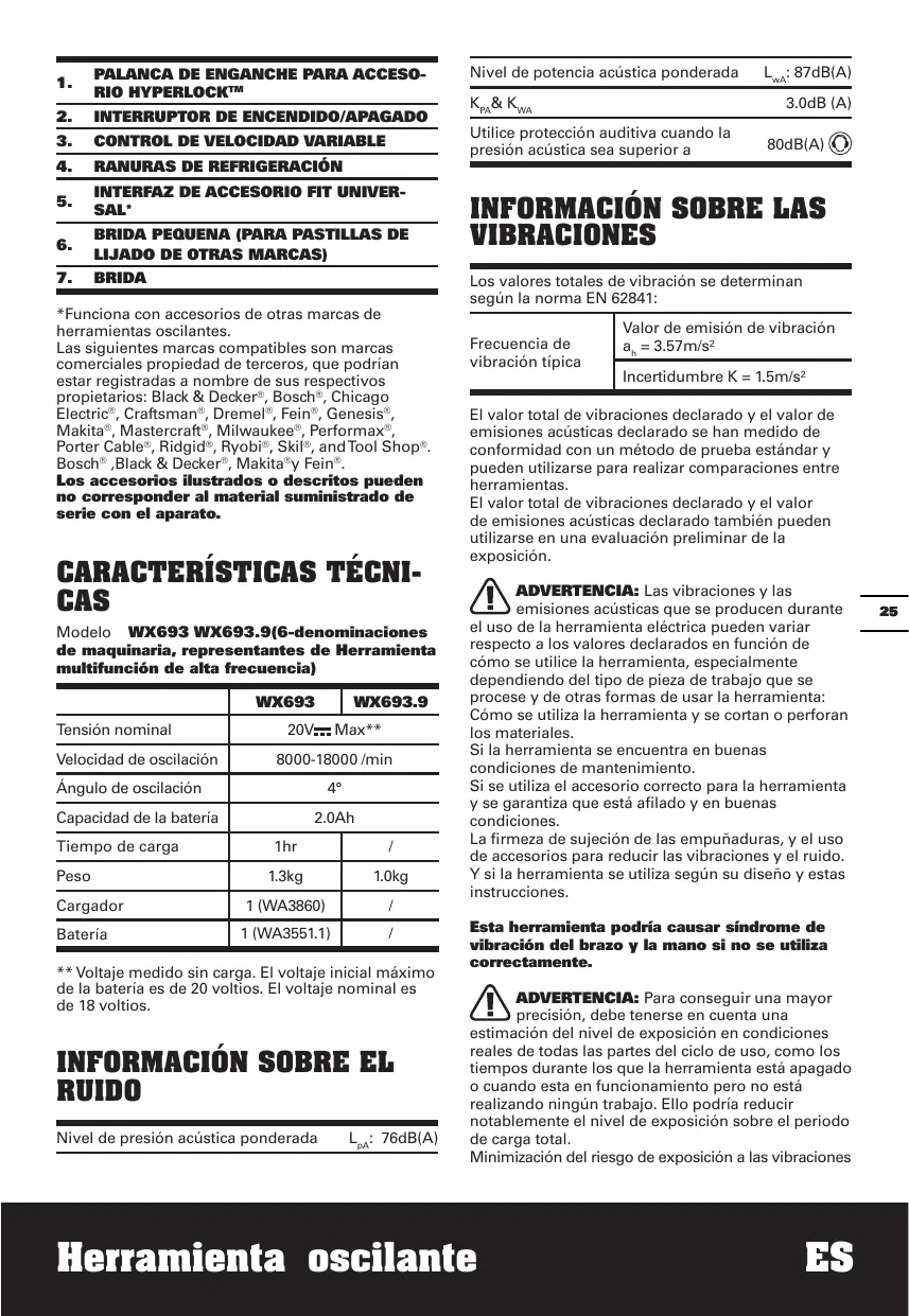 WX693 - WX693.9 - Multiherramienta WORX - Manual de uso y guía de instrucciones gratis