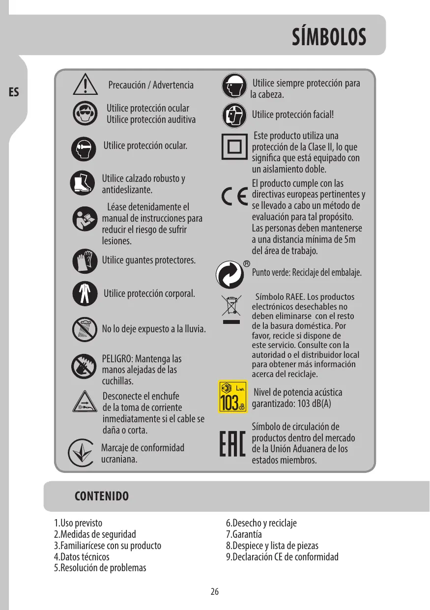 Nivel de potencia acüstica garantizado: 103 dB(A)