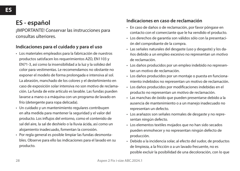 Las señales naturales del desgaste (uso y desgaste) y los da- os debido a un empleo excesivo no representan un motivo de reclamaciôn.