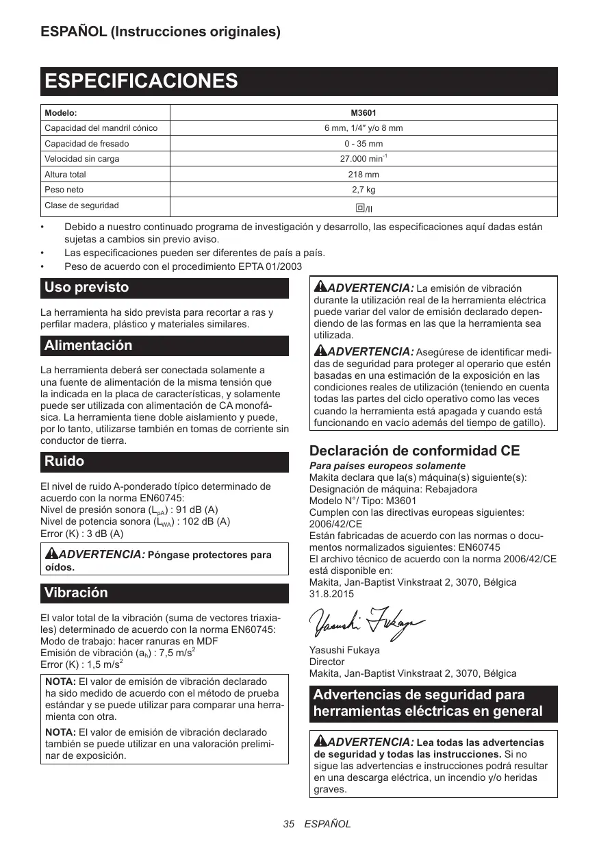 Descarga las instrucciones para tu Enrutador en formato PDF gratis! Encuentra tus instrucciones M3601 - MAKITA y toma tu dispositivo electrónico nuevamente en la mano. En esta página están publicados todos los documentos necesarios para el uso de su dispositivo. M3601 de la marca MAKITA.