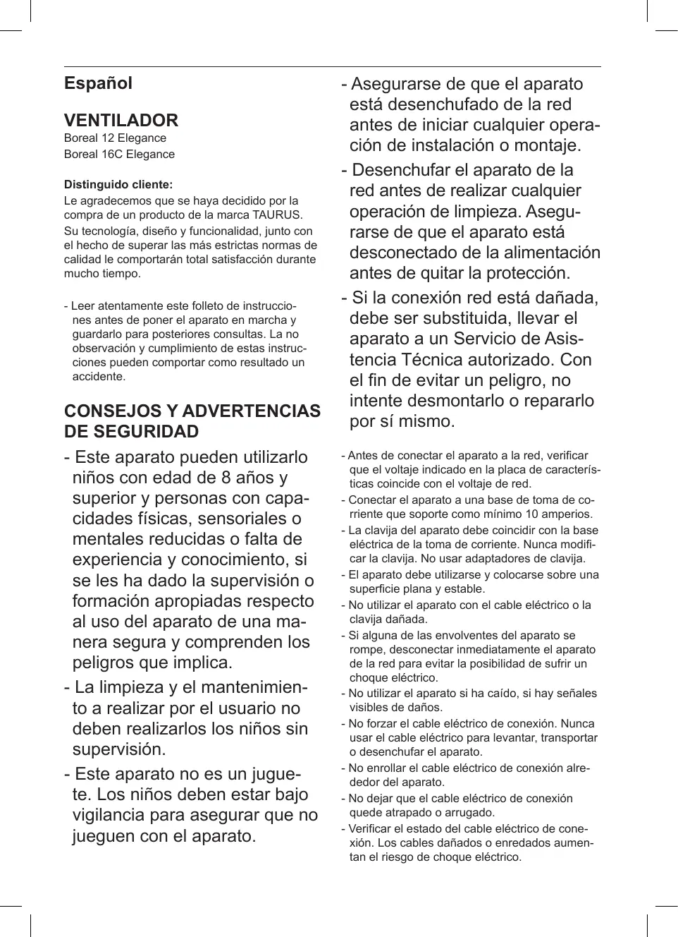 BOREAL 16C ELEGANCE - Admirador TAURUS - Manual de uso y guía de instrucciones gratis