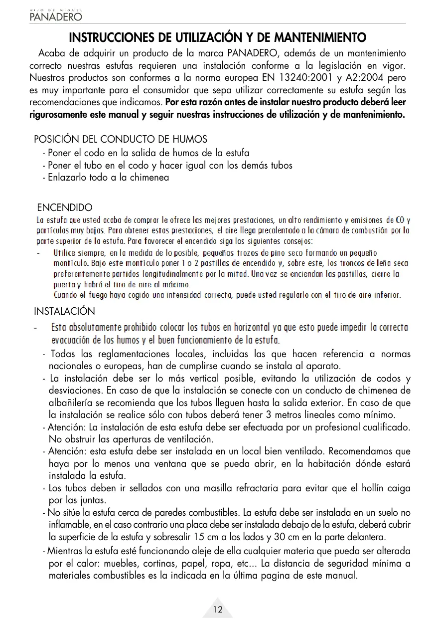ENCENDIDO La estufa que usted acaba de comprar le ofrece las mejores prestaciones, un alto rendimiento y emisiones de CO y