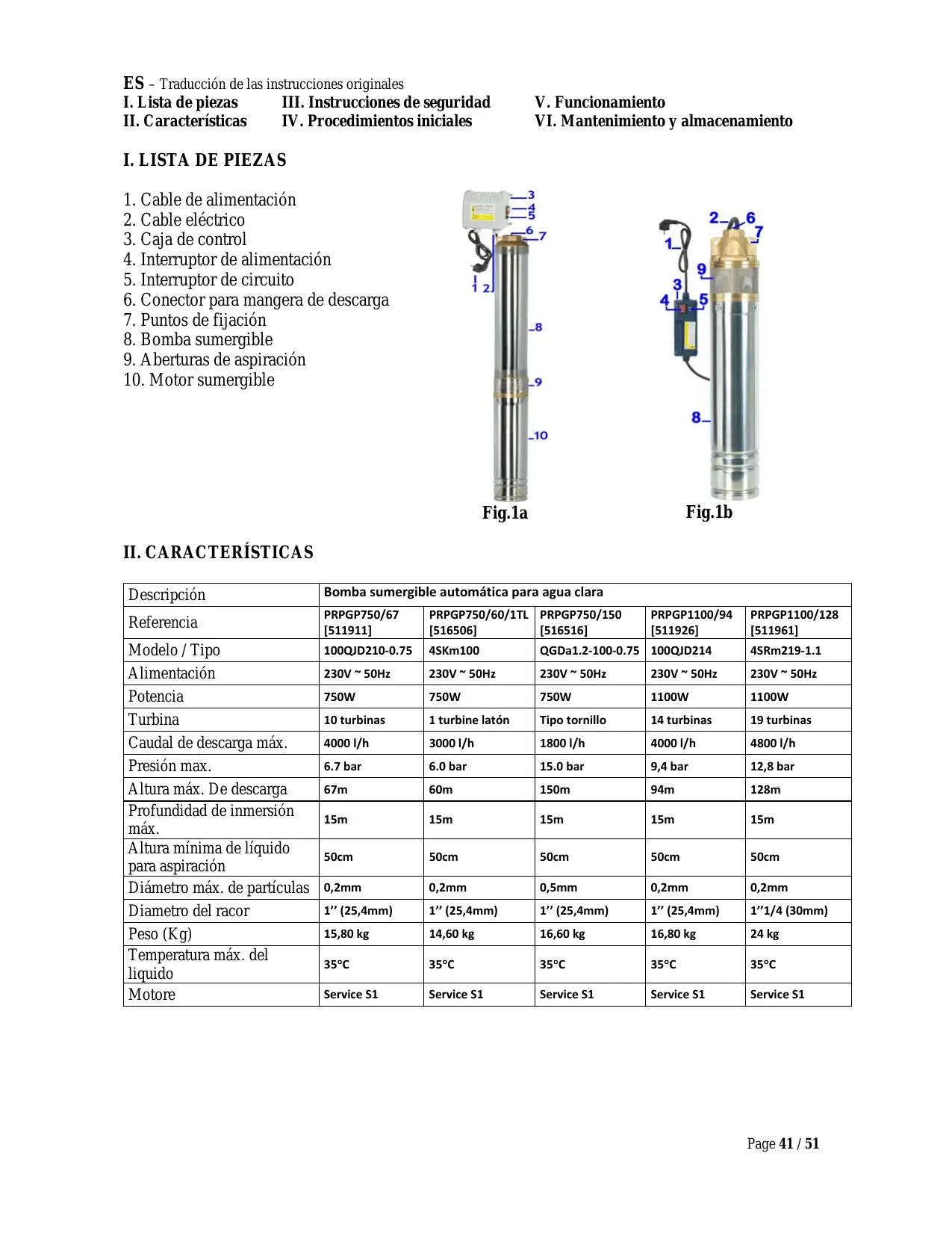 1.Esta bomba sumergida puede destinarse a un uso domestico, industrial o agricola, para aspirar aguas claras / limpias con partículas en suspENSION conargo inferior a 0,2mm o 0,5mm (ver Caracteristicas).
