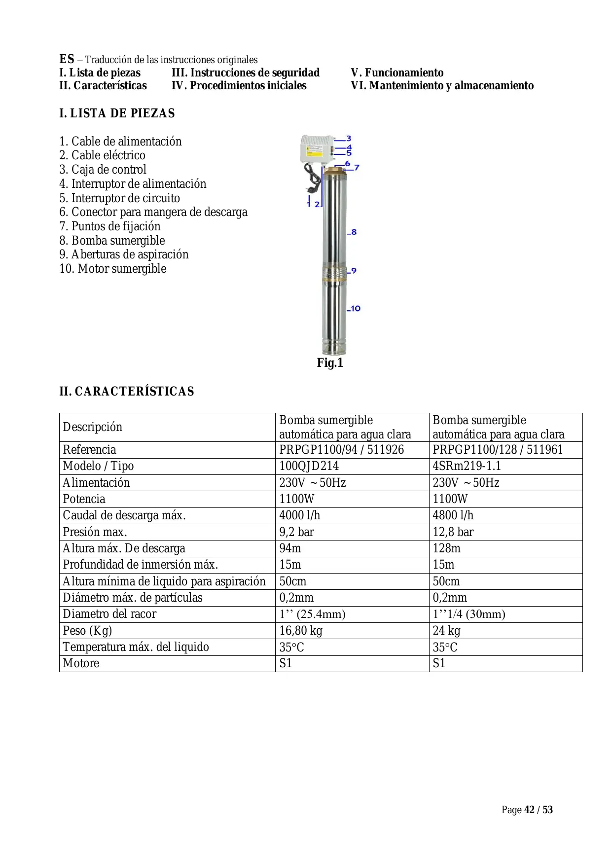 - Después de que la bomba he funciona para lo menos durante 15关键时刻, comprobar la potencia de la bombaa;nivel del motor, el nivel más bajo de agua y todas las otheras caracteristicas.