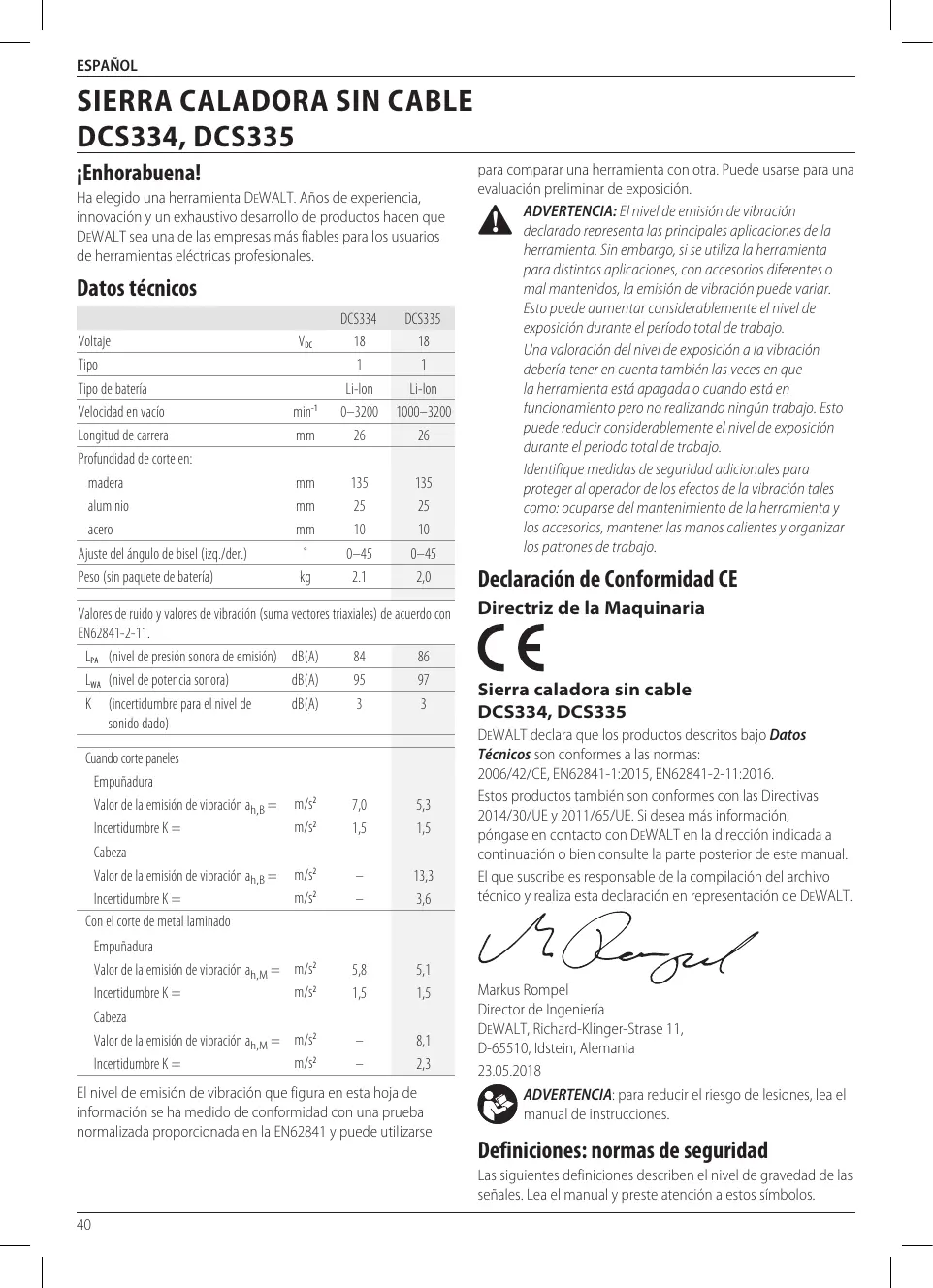 Descarga las instrucciones para tu Sierra de calar inalámbrica en formato PDF gratis! Encuentra tus instrucciones DCS334NT-XJ - DCS334 - DCS335 - DEWALT y toma tu dispositivo electrónico nuevamente en la mano. En esta página están publicados todos los documentos necesarios para el uso de su dispositivo. DCS334NT-XJ - DCS334 - DCS335 de la marca DEWALT.