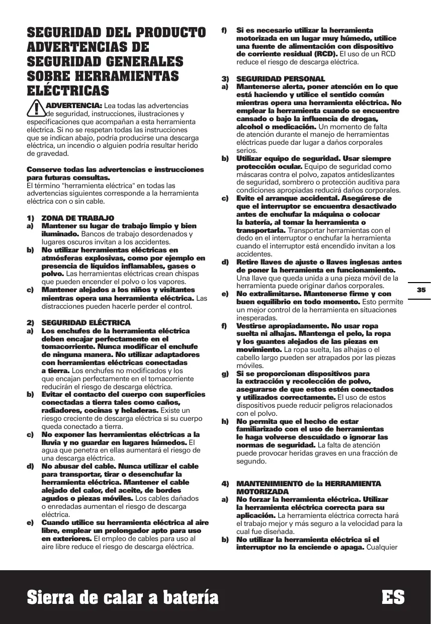 AVERTISSEMENTS DE SÉCURITÉ POUR SCIE SABRE Tenir l'outil par les zones de prises isolées lors d'une utilisation où l'outil tranchant pourrait entrer en contact avec des fils cachés. l'accessoire de coupe, s'il entre en contact avec un fil “sous tension’ peut mettre les parties métalliques exposées de l'outil “sous tension” et électrocuter l'opérateur.