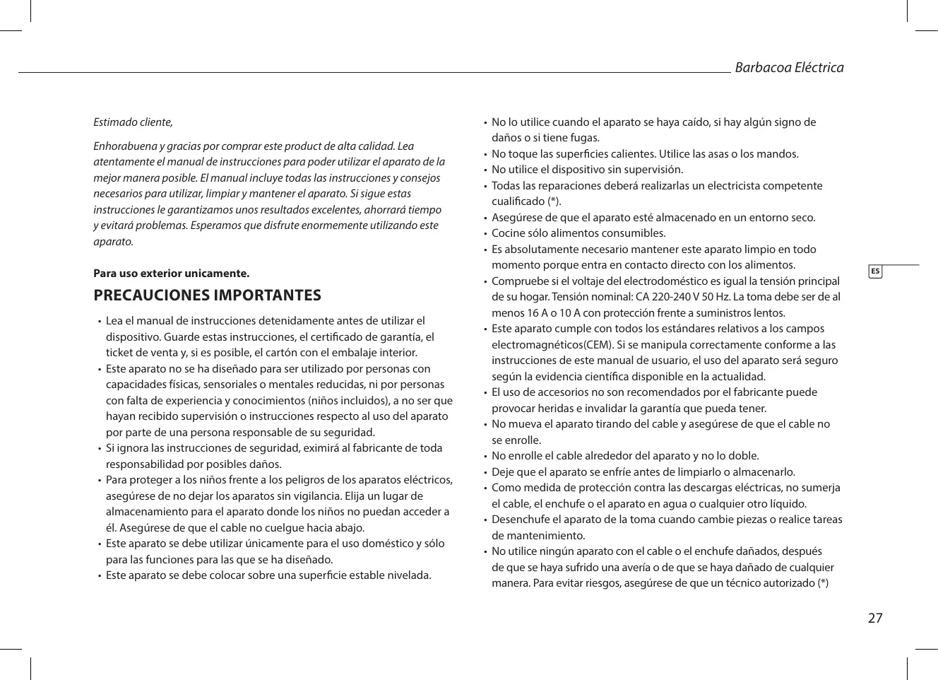 13) todo lo que pueda dentro del enchufe del aparato de la parrilla