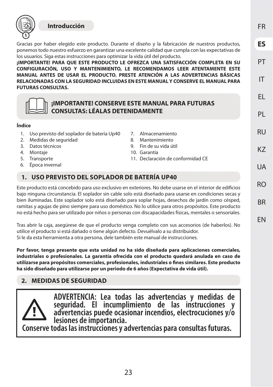 UP40 - 40VBL2-GT.1 - Soplador de hojas STERWINS - Manual de uso y guía de instrucciones gratis
