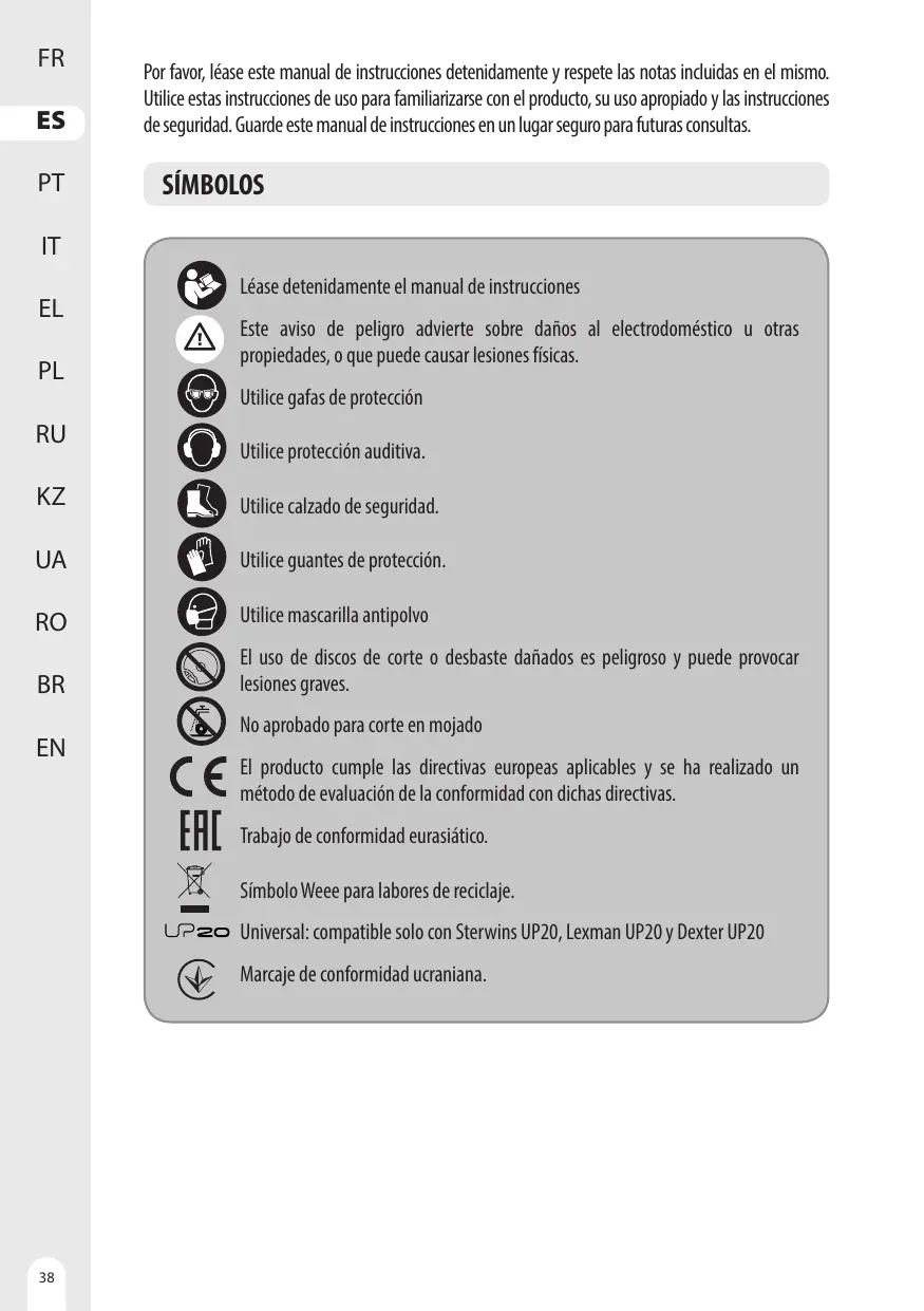 Encuentra gratis el manual del aparato UP20 BRUSHLESS - 20VCIS3-190BL.1 DEXTER en formato PDF.